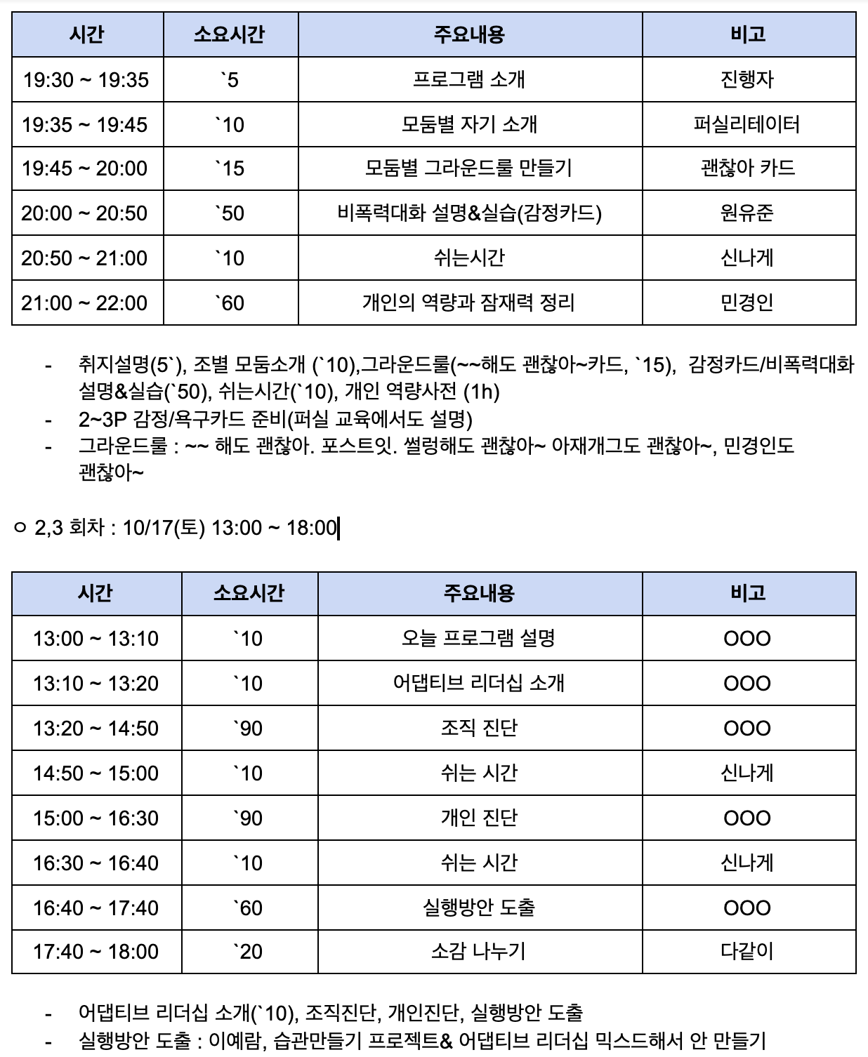 벌써 3년차를 맞이하고 있다. 흥사단 전국청년위원회 칭구들과 '청년들 안에 잠재력을 끌어 내어 이 사회 속에서 변화를 이끌어 나가는 주체로 성장할 수 있도록 도와주는 프로그램'을 기획하고 진행한 것이 말이다. 1회차때는 성격유형심리검사와 디자인씽킹이 주요한 방법론이었고, 2회차에는 어댑티브리더십과 역량이론을 가지고 청년들의 잠재력을 찾고 개발하려는 시도를 해 보았다. 이번 3회차에는 2회차의 내용들이 다소 어려웠다는 것을 인지하여 2회차의 내용들을 조금 더 자세하고 깊게 다루어 보기로 했다.