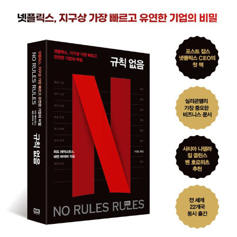 이 책은 넷플릭스의 현 CEO가 쓴 첫 책으로, 넷플릭스의 경영 방식과 기업문화에 관해 인시아드 경영대 교수 에린 마이어와 대담하는 방식으로 이뤄진다. 어떻게 넷플릭스는 모두의 상식을 뒤엎는 파격적인 행보로 세계 최고 가치의 기업이 되었을까? 미국과 영국, 이탈리아, 일본 등 전 세계 20개국에 판권이 팔린 『규칙 없음NO RULES RULES』에 낱낱이 공개된다! 한국판은 원서와 동시 출간된다.