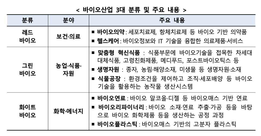 바이오산업은 인구·자원·환경 등 글로벌 사회문제에 대응하기 위한 돌파구이자 급속한 산업성장이 예상되는 유망 분야