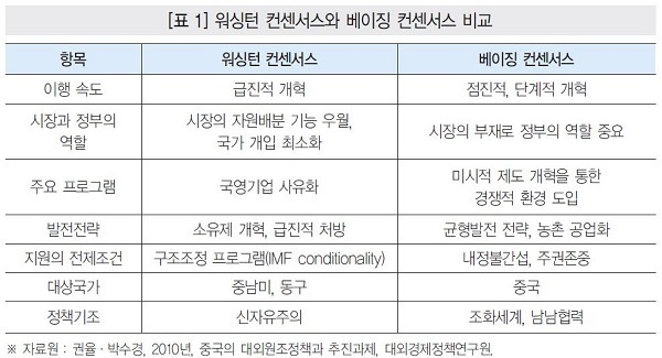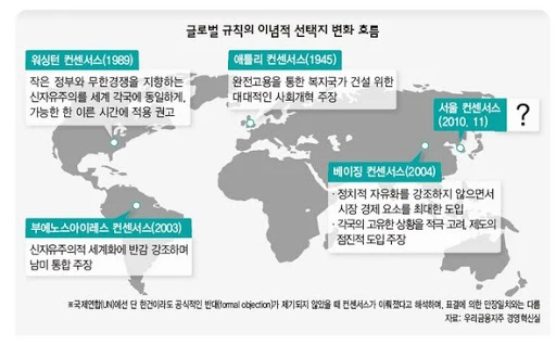 워싱턴 컨센서스(Washington Consensus)를 통해서 '신자유주의적인 방법론'이 세계적으로 확대된다.