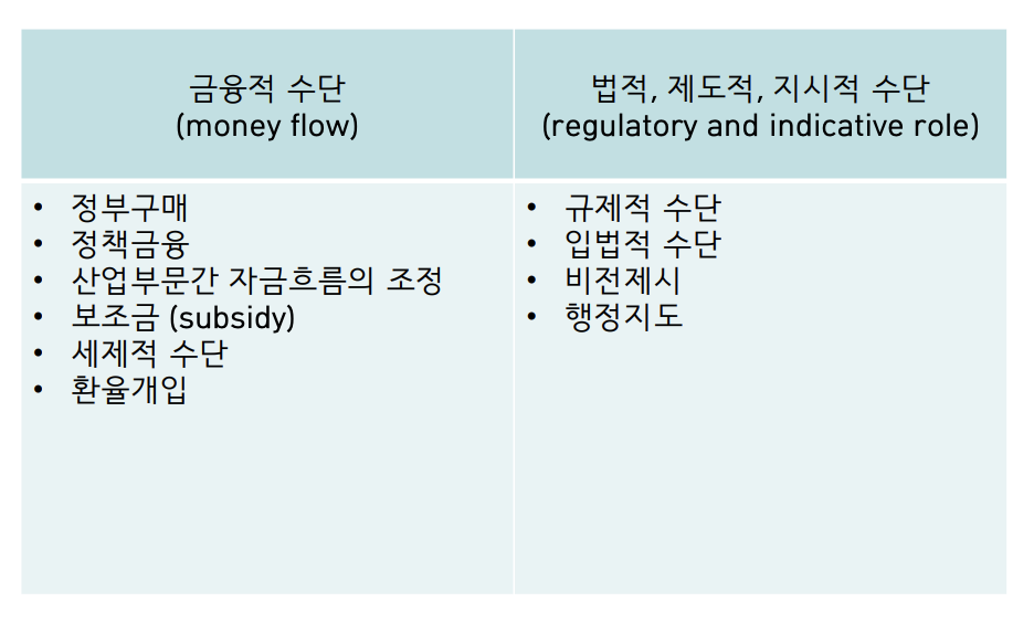 • 4주: 이론적 배경/산업정책의 수단과 유형