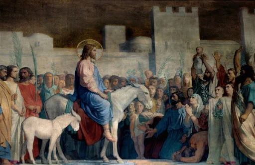 제자들이 나귀 새끼를 예수께로 끌고와서