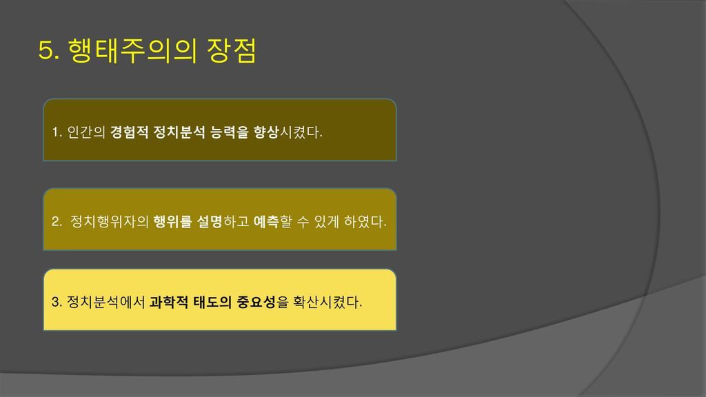 - 행태주의에서는 관찰하고 측정할 수 없는 것은 과학적 연구의 대상이 아님