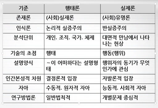- 개인의 움직임과 특성은 개인의 행태(behavior)를 통해 바깥으로 나타나는 것이기 때문에, 사회현상에 대한 과학적 설명은 바로 개인의 행태를 관찰하고 분석하는 것
