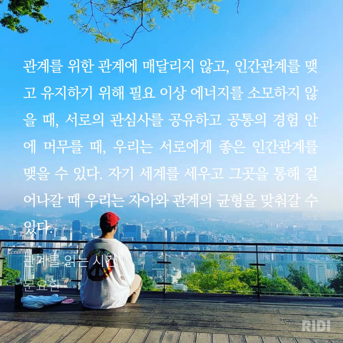 칼린 지브란은 '예언자'에서 이런 이야기를 했다. "서로 사랑하라 마치 나무가 서로에게 거리를 두고 바람이 흘러가도록 내버려 두는 것처럼" 글을 읽는 사람들에게 예언을 한 것이다. 인생에서 시간이 지날 수록 무엇인가에 기대어서 했던 것들은 점점 자기에게도 돌아 온다. 누군가가 있어서 행복했고, 어떤 것을 했기 때문에 즐거웠던 것들을 아직도 붙잡고 사는 사람은 아직은 '진정한 여가'를 즐기지 못하고 있는 것이다.