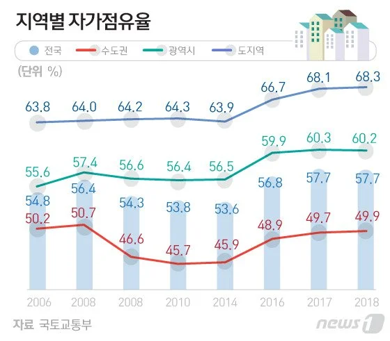 1960년 : 주택보급율 84 / 자가점유율 56