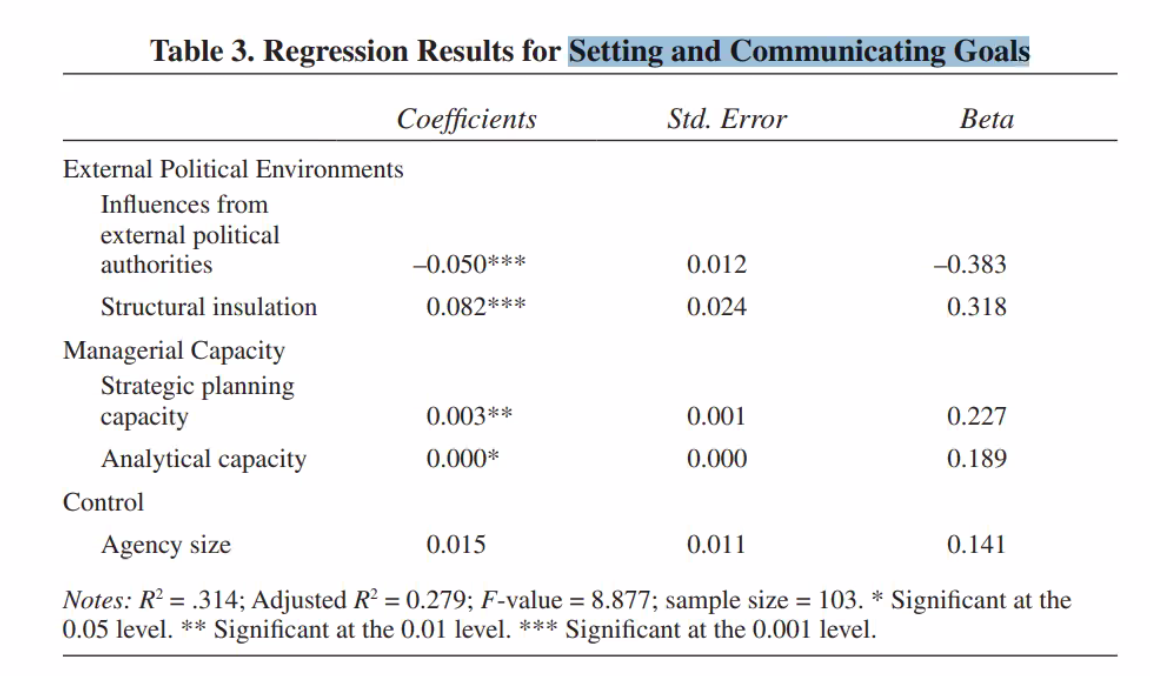 외부 정치적 환경이 안정적이고 관리역량이 있으며 집단이 작을 수록 목표설정이 잘 된다고 볼 수 있다.