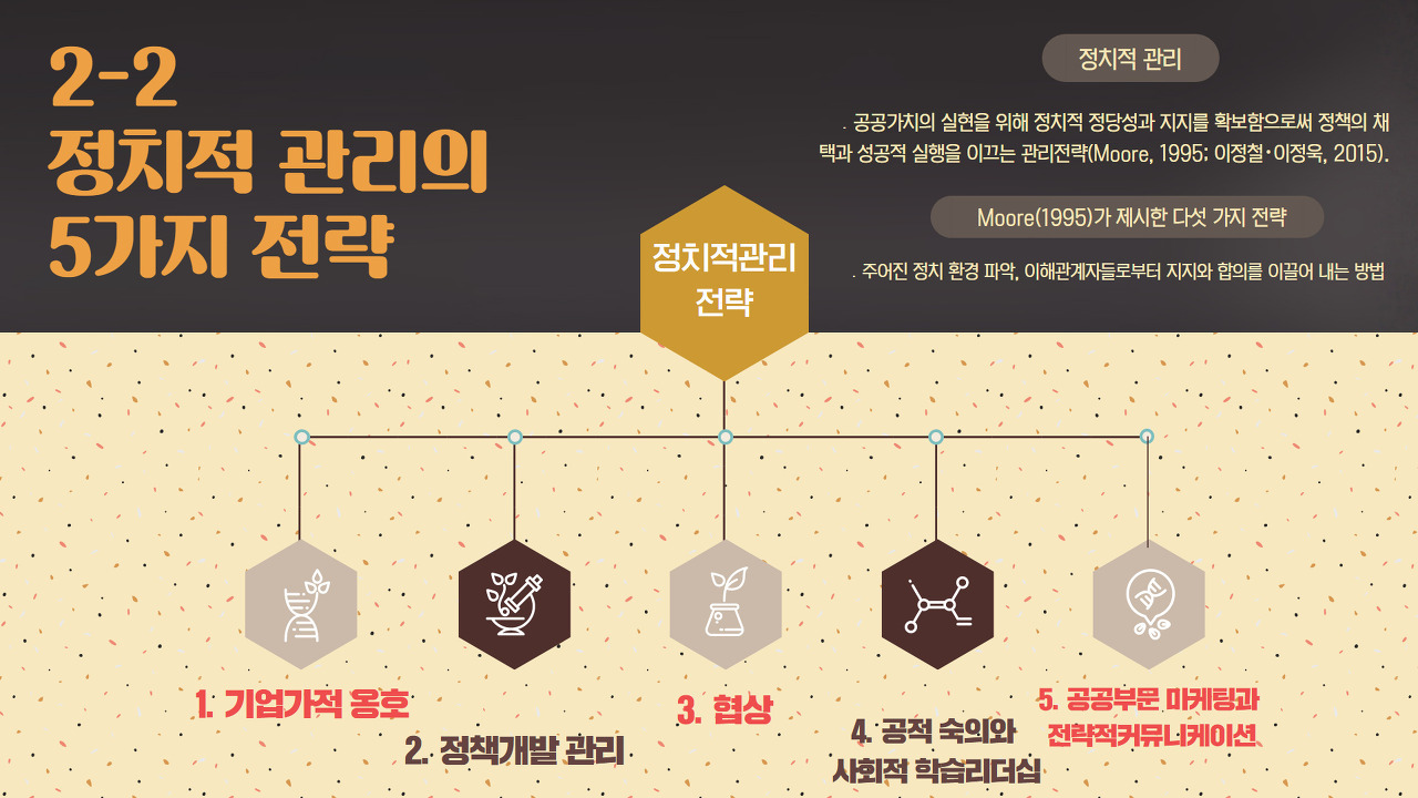 정치적 환경으로부터 인정을 받고 서로 네트워크를 하려면 이러한 '정치적인 교환관계'를 잘 설계해야 한다.