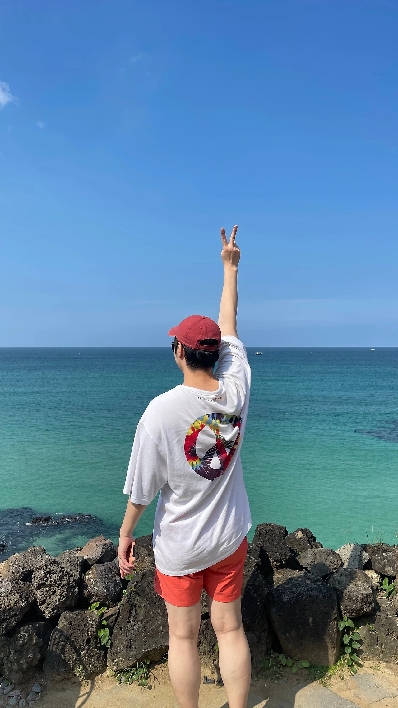 푸르는 제주의 바닷가에서 보내는 여행은 기분을 최고조로 올려주었다.