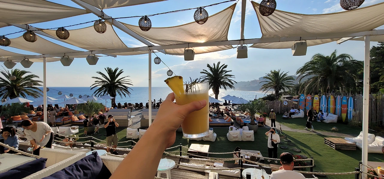 여기는 애월더 선셋 앞바다, 물이 정말 푸르고 이뻤다. 아는 동생은 여기서 스노우쿨링을 한다고 한다.