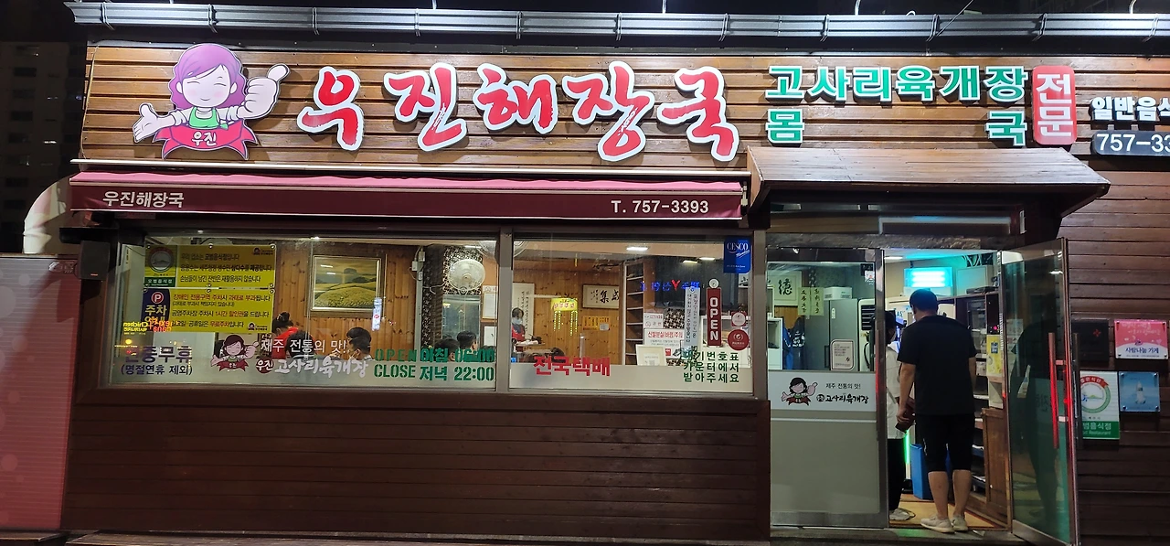 낮에 가면 먹을 수 없는. 그러나 저녁에 가니깐 10분정도 기다렸다가 들어갈 수 있었던 우진해장국.