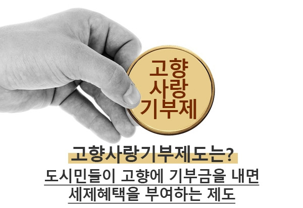 고향사랑 기부제도는 도시민들이 고향에 기부금을 내면 세제혜택을 부여하는 제도이다.