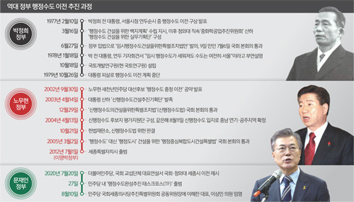 광해군은 교화로 정조는 수원으로 천도를 시도했고 박정희대통령의 백지계획이 있었다.