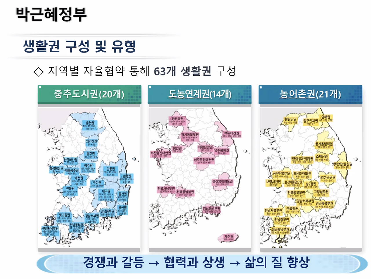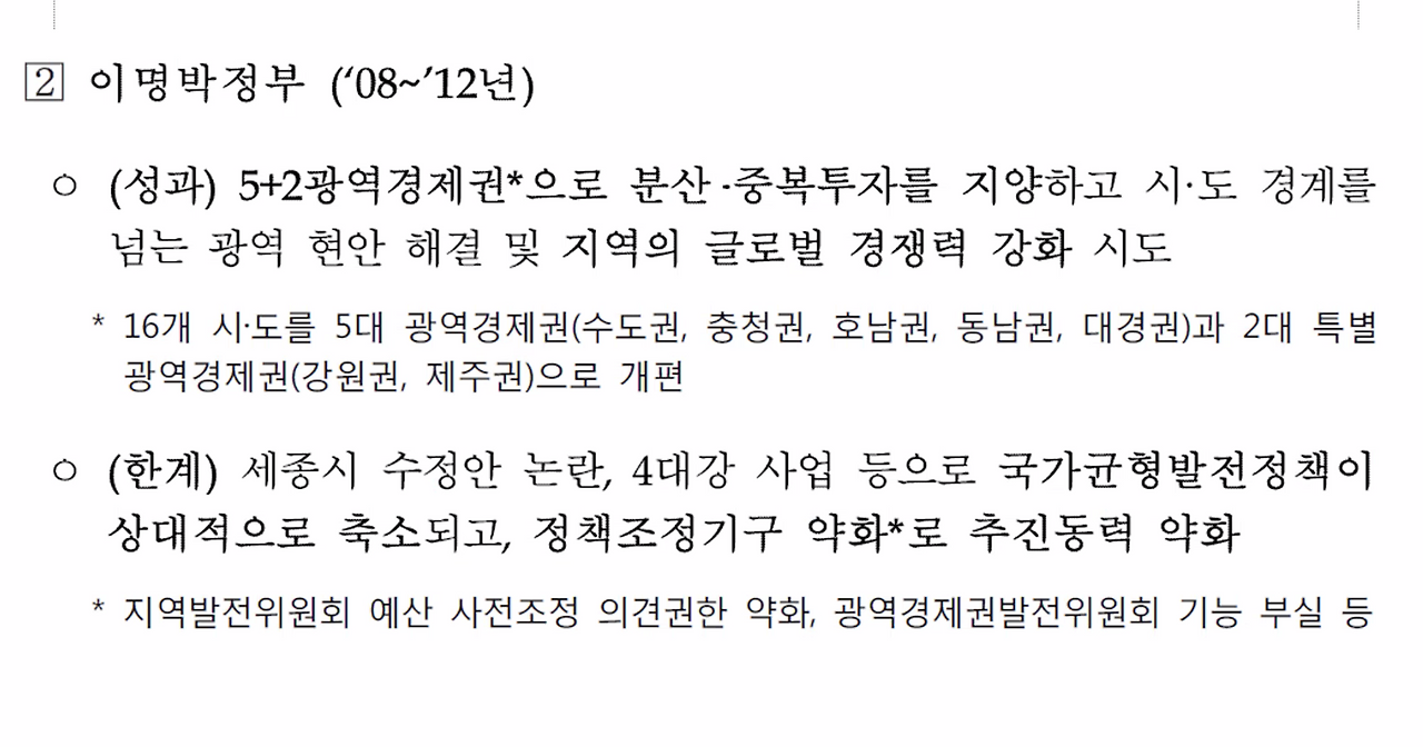 성과 : 세종시, 혁신도시 건설, 공공기관 지방이전 등 공간적 분산 정책을 통한 지역간 불균형 시정 및 국가균형발전 토대 마련