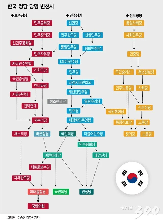 한국의 정당은 잦은 당명교체와 정치인들의 이동으로 제도화된 정당이 되기도 전에 새로운 정당으로 바뀐다. 보통 30년이상을 정당을 유지해야 제도회된 정당이 되지만 한국의 정당은 길어봐야 3년을 넘기지 못한다.
