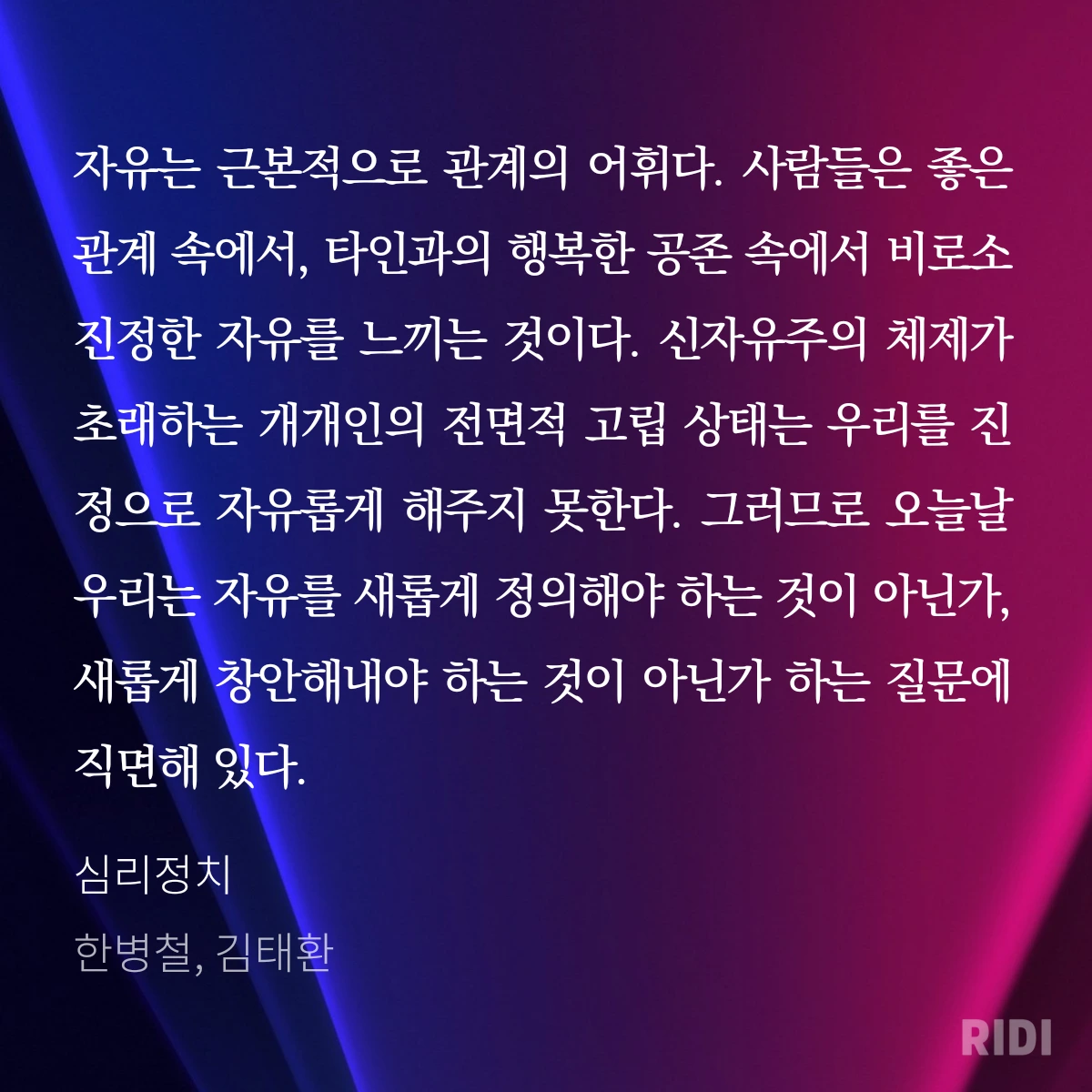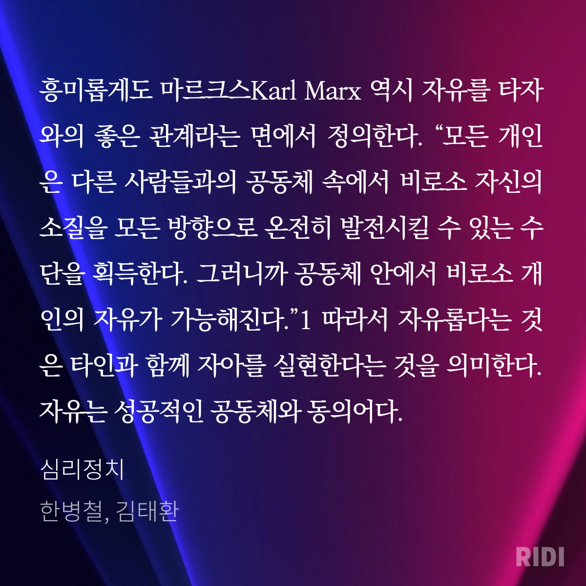 그 자유는 공동체 안에서만 가능하다는 것만 빼고.