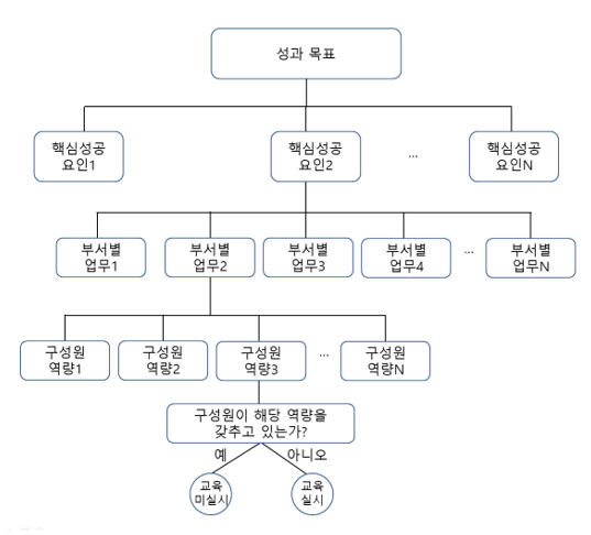 요구분석은 요구사정에 이어 진행될 수 있는 구체적인 해결책을 만들기 위한 과정이다. 기술적, 미시적 과정이기 때문에 위에서 살펴본 6가지의 조직의 구성요소들의 미시적인 부분으로 들어가서 하나하나 역량과 현재수준을 비교하는 것이다.