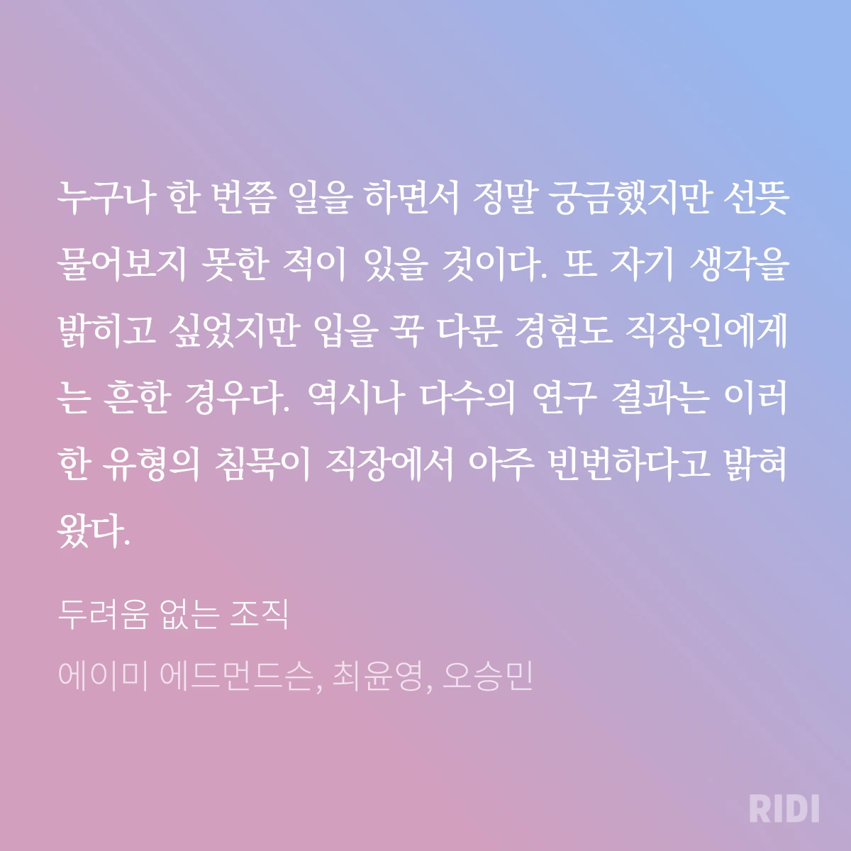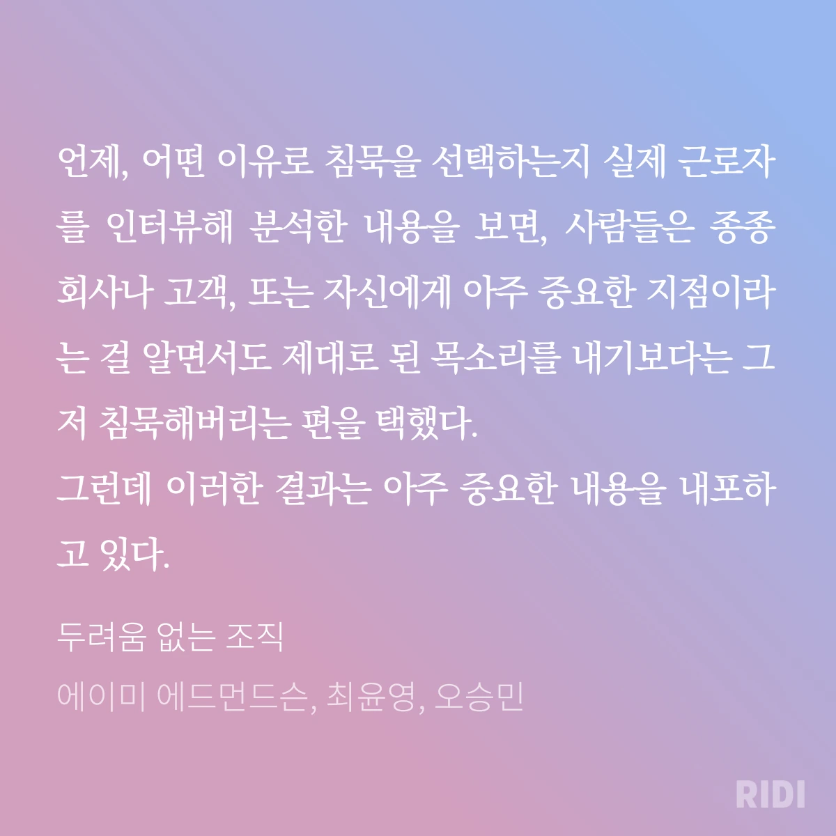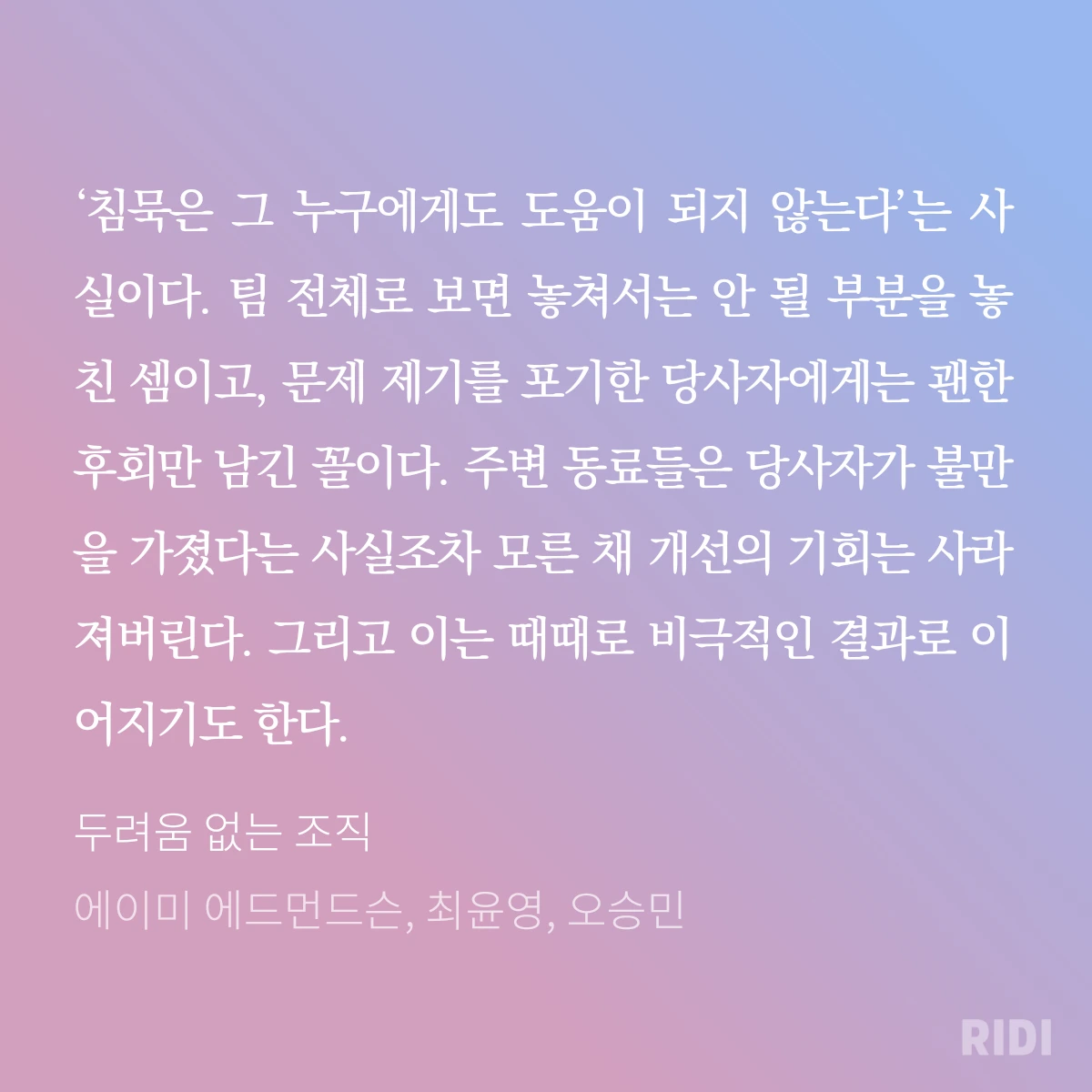 안정감있는 조직문화를 만드는 것이 쉽게 침묵에