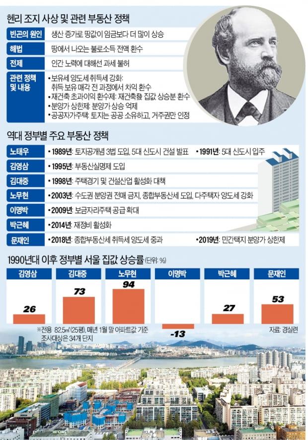 헨리조지의 이론은 간단하다 '생산력=지대+임금+이자'라는 것이다. 이것을 다시 생각해보면 생산력에서 지대를 빼면 이것이 임금과 이자가 된다는 것이다. 그런데 여기서 지대가 낮아질수록 생산력이 높아질수록 임금과 이자는 높아진다. 반대로 생산력이 높아지는대도 임금과 이자가 떨어지는 것은 지대가 덩달아서 높아지기 때문이다.