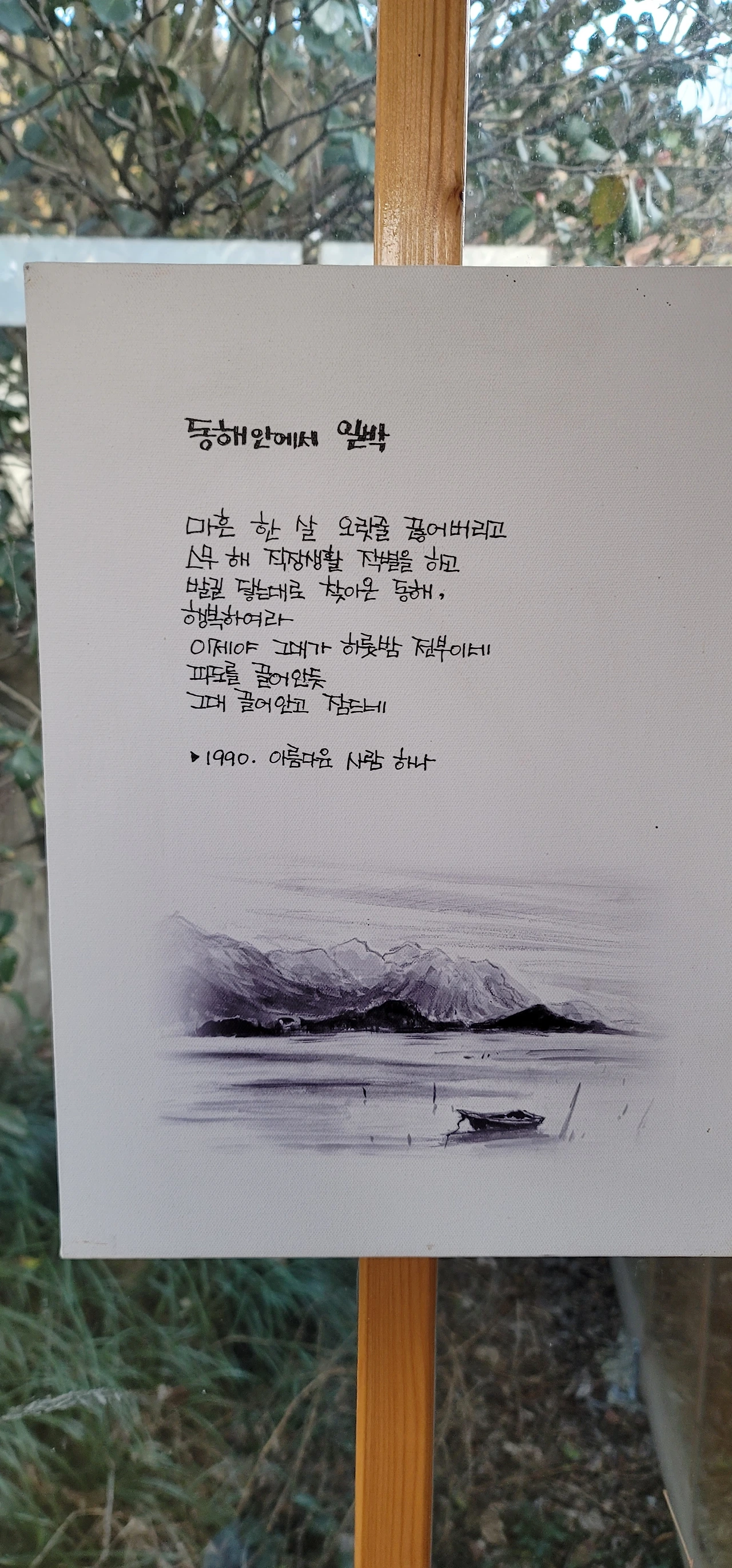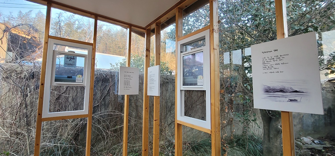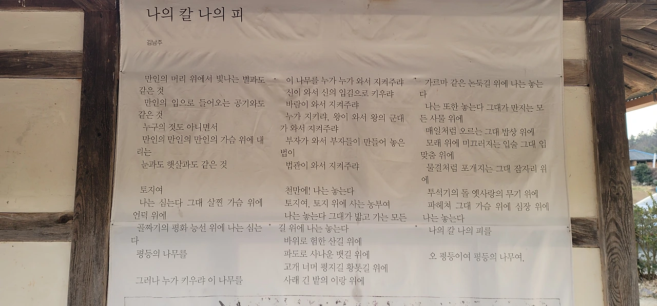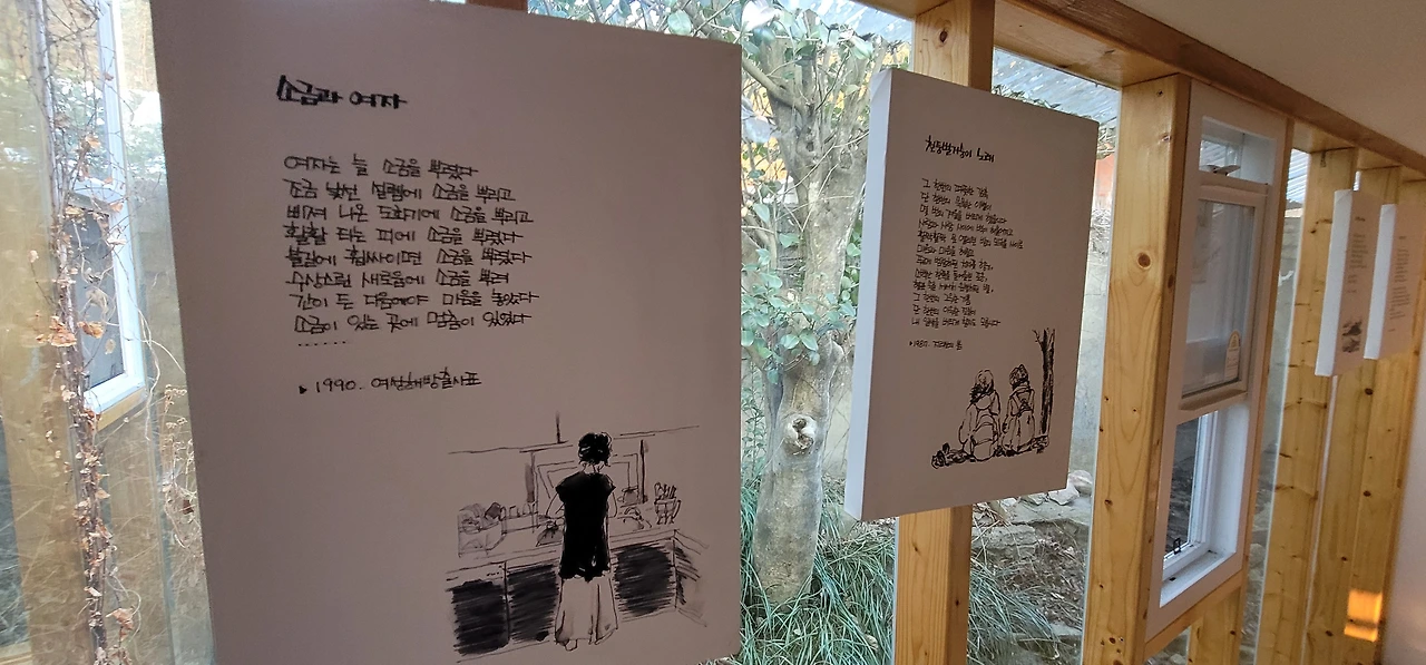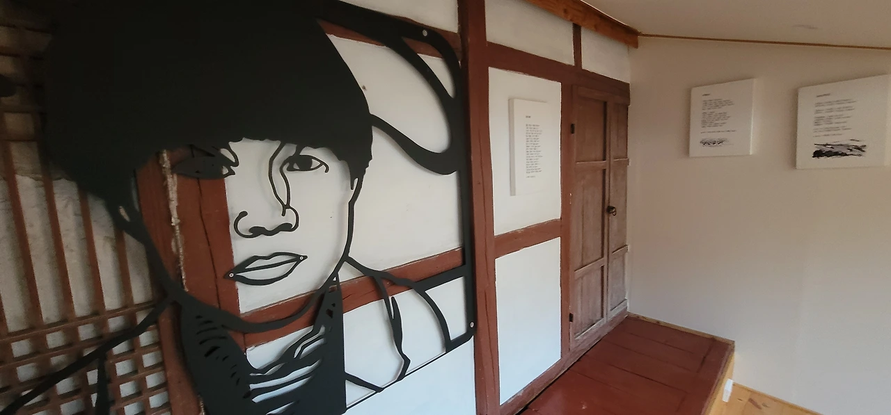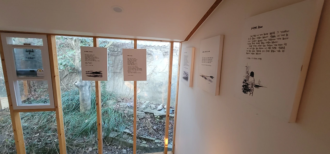 뒤로 돌아가면 시원하게 앉아서 시를 감상할 수 있다. 물론 겨울이라 시원한게 아니라 춥지만. 시인의 사진과 유품들을 보고 있으니 삼라만상이 역사를 불러오는구나