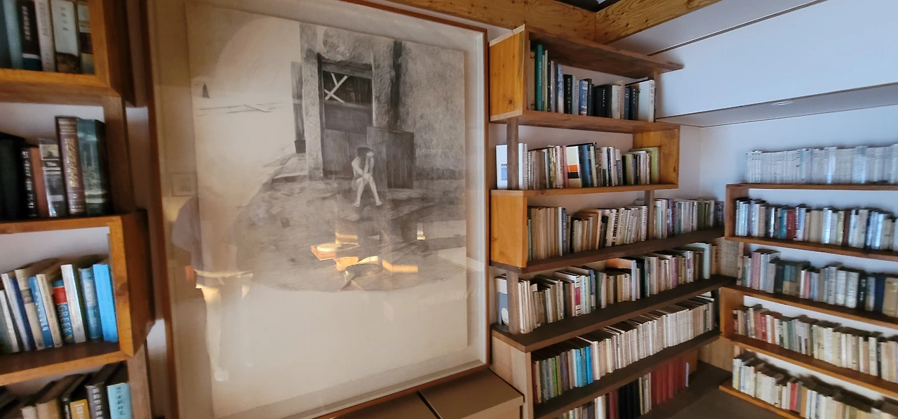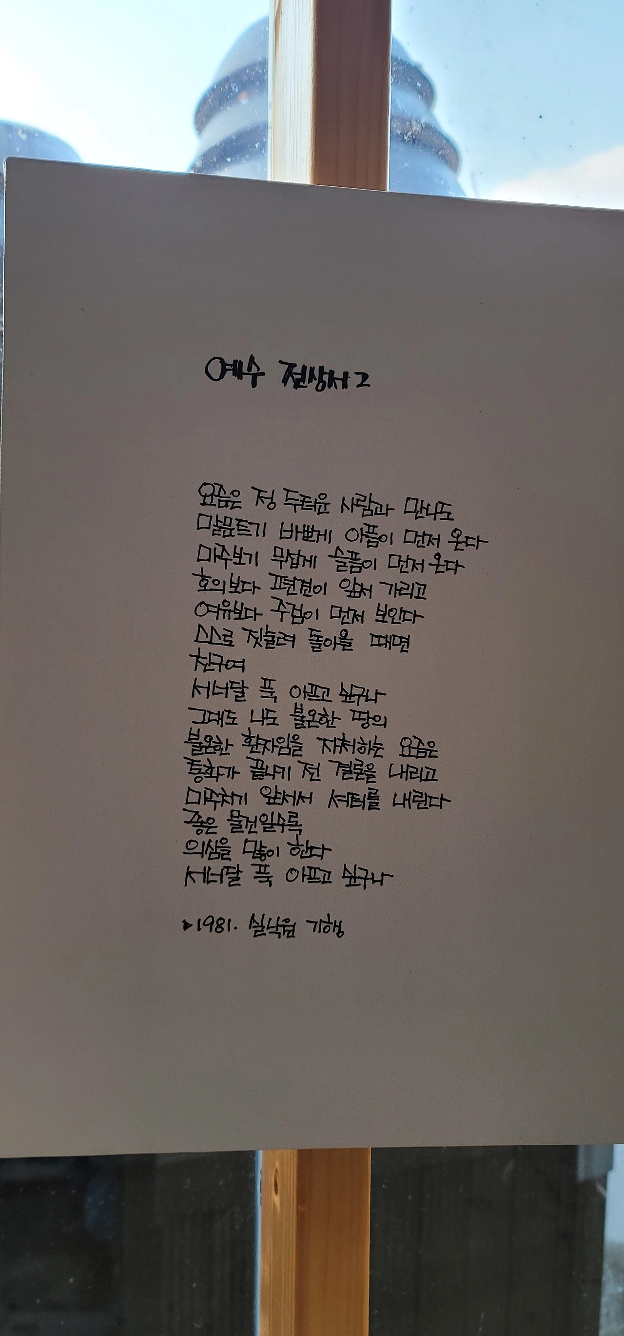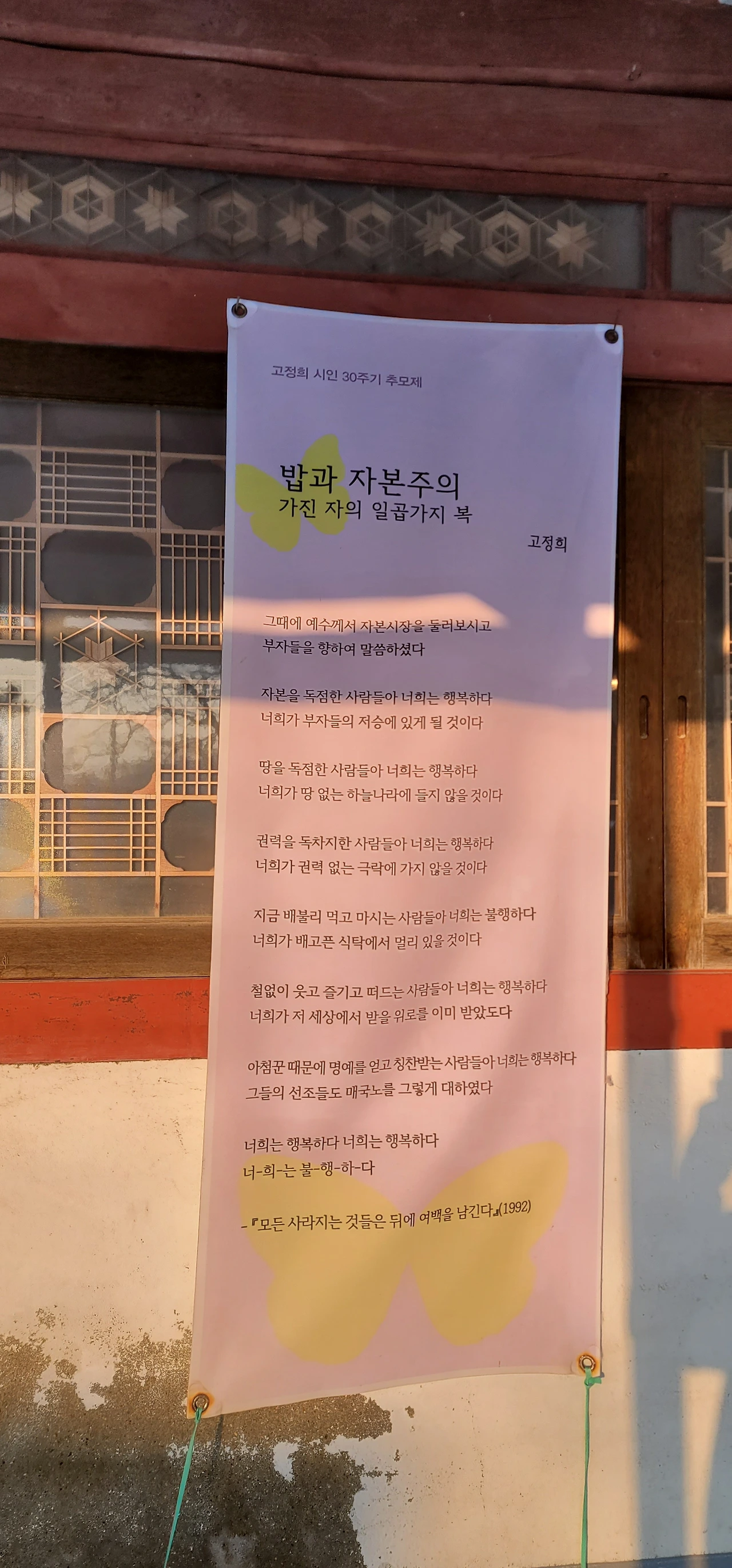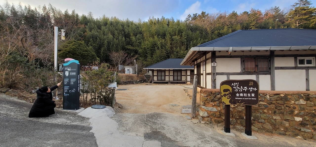 뒤로 돌아가면 시원하게 앉아서 시를 감상할 수 있다. 물론 겨울이라 시원한게 아니라 춥지만. 시인의 사진과 유품들을 보고 있으니 삼라만상이 역사를 불러오는구나