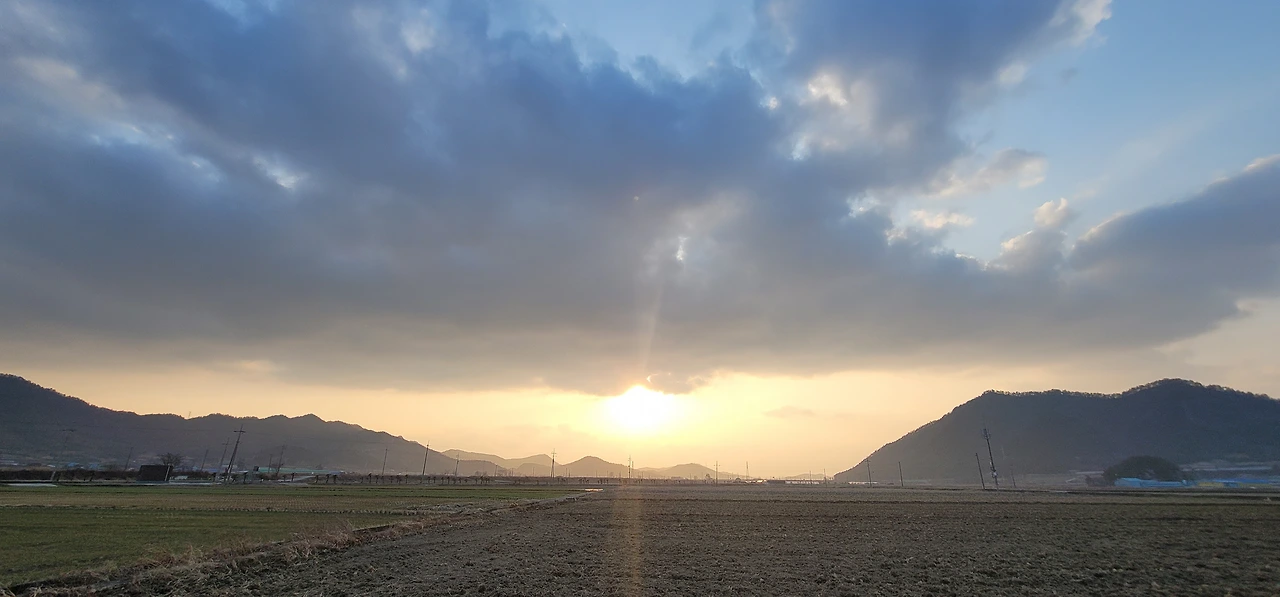 마침 해가 서산을 넘어서 뉘엿뉘엿 지고 있었다