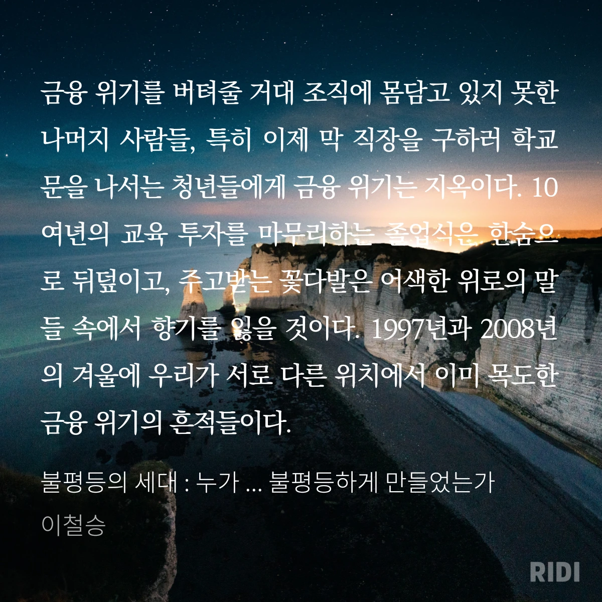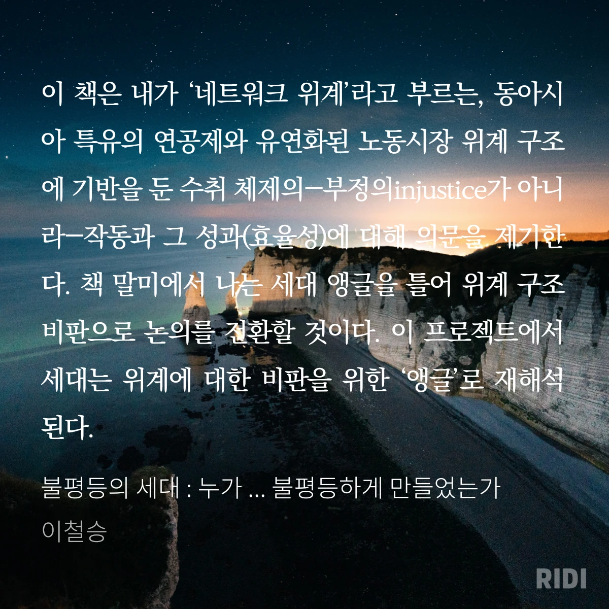 청년 실업과 비정규직 차별, 학벌주의, 연공서열과 여성 배제의 구조, 부동산 문제까지 한국 사회의 불평등 구조를 이해하는 세 가지 키워드 쌀 / 재난 / 국가 2019년 한국 사회에 세대론과 불평등에 관한 새로운 시각을 제시했다는 평을 받으며 언론과 학계, 정계, 일반 대중에게까지 뜨거운 반응을 불러일으킨 『불평등의 세대』의 저자 이철승의 신작이 문학과지성사에서 출간되었다. 『쌀, 재난, 국가 ─ 한국인은 어떻게 불평등해졌는가』가 그것. 저자 이철승은 전작 『불평등의 세대』에서 ‘세대’라는 키워드를 통해 한국 사회의 위계 구조가 어떻게 세대와 맞물리며 불평등을 야기해왔는지를 다양한 데이터 분석을 바탕으로 흥미롭게 펼쳐 보였다.