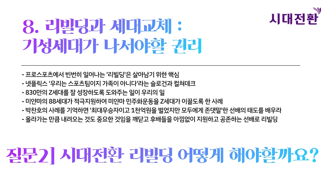 - 세대를 조금 이해하려는 노력이지 않을까? 제목은 거부감이 있기는 하지만 그런 측면에서 보면 좋을 것 같다.