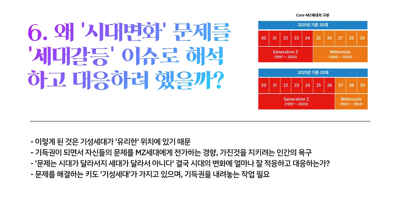 - 본질적인 문제에 접근하지 못하게 만드는게 '세대론일 수도 있다'
