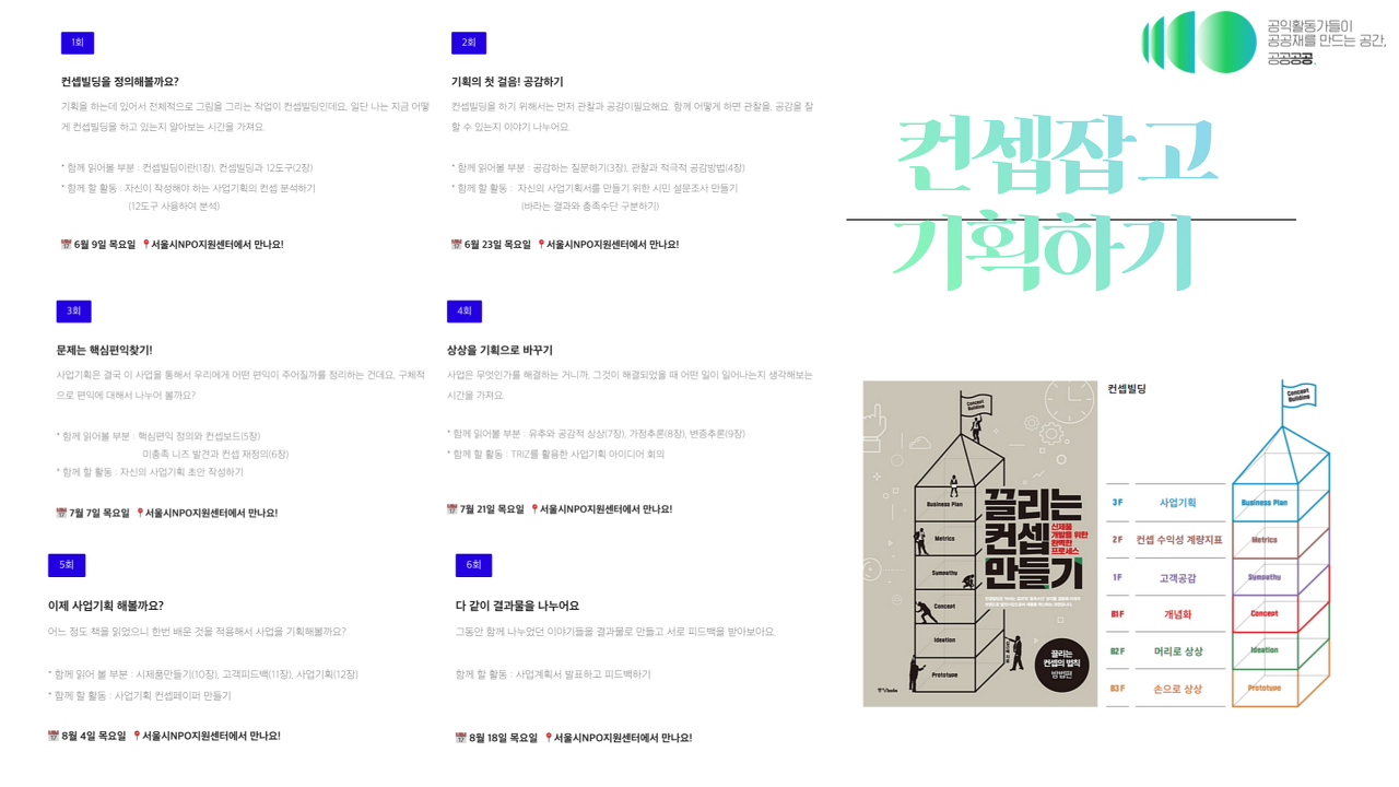 기획에 대한 고민도 다양한 층위가 있겠지만<컨셉잡고 기획하기>모임은 '끌리는 컨셉 만들기'라는 책을 깊게 읽고 컨셉을 만들어 기획에 적용해보는 시간을 가졌습니다. '컨셉을 만든다'는 것은 어떤 방식으로 할 수 있는걸까요? 모임 호스트 민경인님과 <컨셉잡고 기획하기> 과정에 대한 이야기를 나누었습니다.