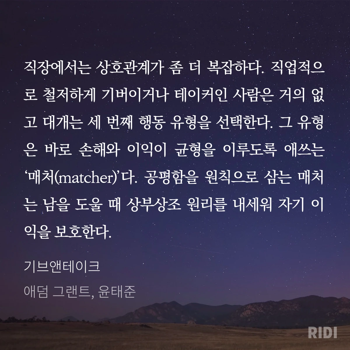 1. 세상에는 기버giver와 매쳐matcher, 테이커taker가 존재한다.