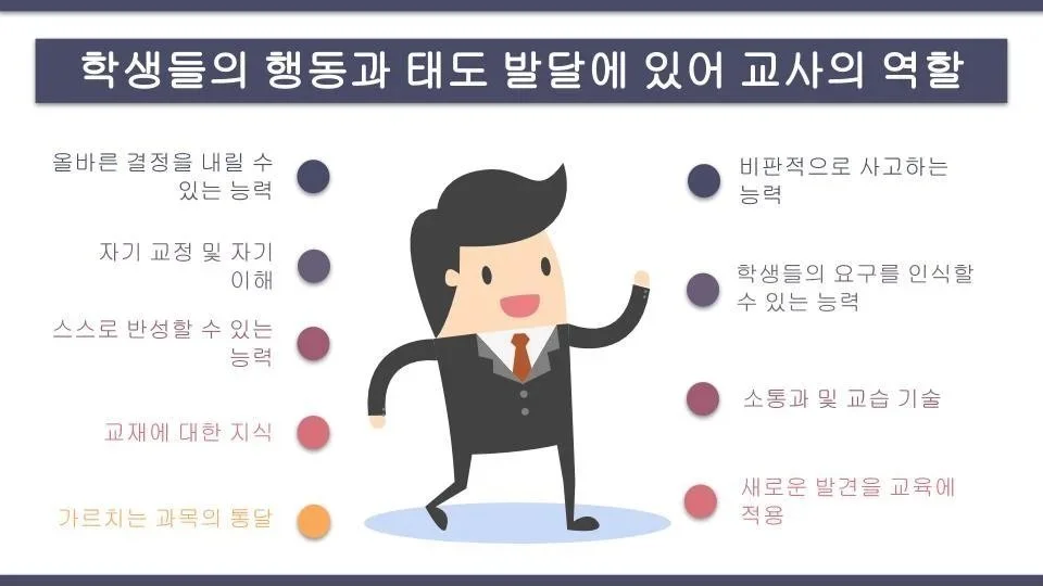 여기에서 교사의 역할은 조금씩 더 달라진다. 행동주의에서는 바람직한 반응을 유발하기 위한 환경을 만드는 것이 교사의 역할이지만, 인본주의에서는 전인적인 발달을 촉진하기 위한 퍼실리테이터의 역할이 교사의 역살이 된다. 반면에 구성주의 학습이론에서는 '멘토'와 같이 학습자에게 의미를 촉진하는 정도의 역할을 하기도 한다. 이러한 이론들은 성인학습에 있어서도 다양한 공헌을 해 왔다. 인본주의와 구성주의 학습이론은 경험학습과 인지발달을 통해서 자기주도학습에 영향을 미치어 온 반면에 행동주의 이론은 교육의 목표나 능력주의 교육, 기술발달 교육과 같이 성인교육에서 정규 직업교육에 주로 사용된다. 여기서 알 수 있는 것은 자기주도식 학습을 구성할 경우 사회적 구성주의나 인본주의 이론을 사용해야 한다는 것이다.