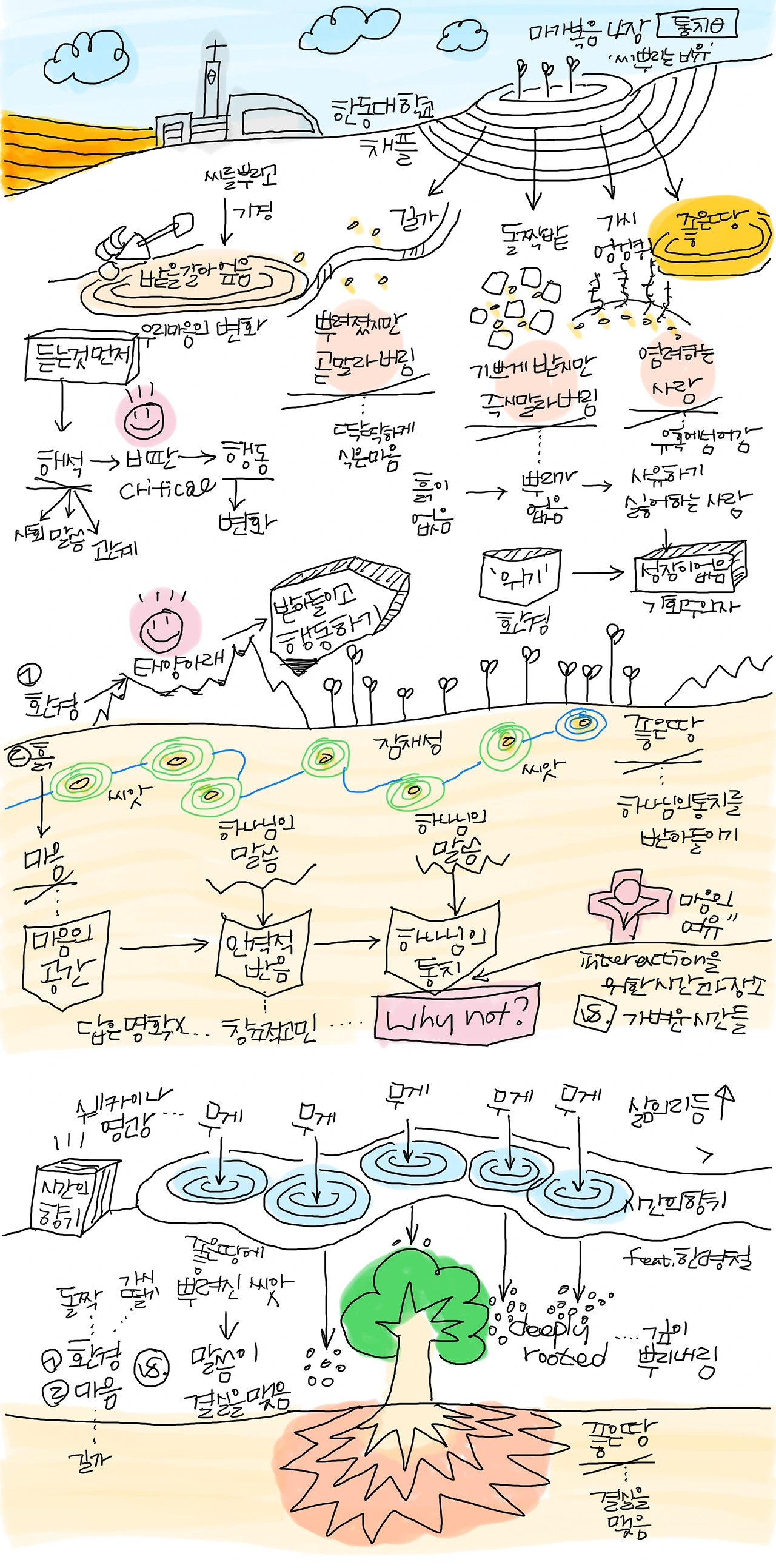 인간이라는 취약성을 인정하면서도 다른 사람을 사랑할 수 있음에 감사하게 사는 이의 마음을 본 적이 있다. 그들이 뿌리는 인생의 씨앗은 '누군가에게는 희망'이다. 그 희망을 심고 자라온 이들이 또 다른 사람에게 희망을 전해줄 수 있다. 그러니깐 돌짝밭에, 가시엉겅퀴 사이에, 메마른 길가에라도 계속해서 씨를 뿌리는 사람이다. 울더라도 씨를 뿌리고 말라 비틀어질 것 같아도 씨를 뿌리는 사람이다. 사실은 씨를 받는 사람의 마음이 중요한게 아니라 누군가 계속 이 씨앗을 뿌리고 있었다는 것이 중요하다. 우리도 언젠가 계속 씨를 뿌리는 희망을 풍성하게 가지고 있는 사람이 되겠지.