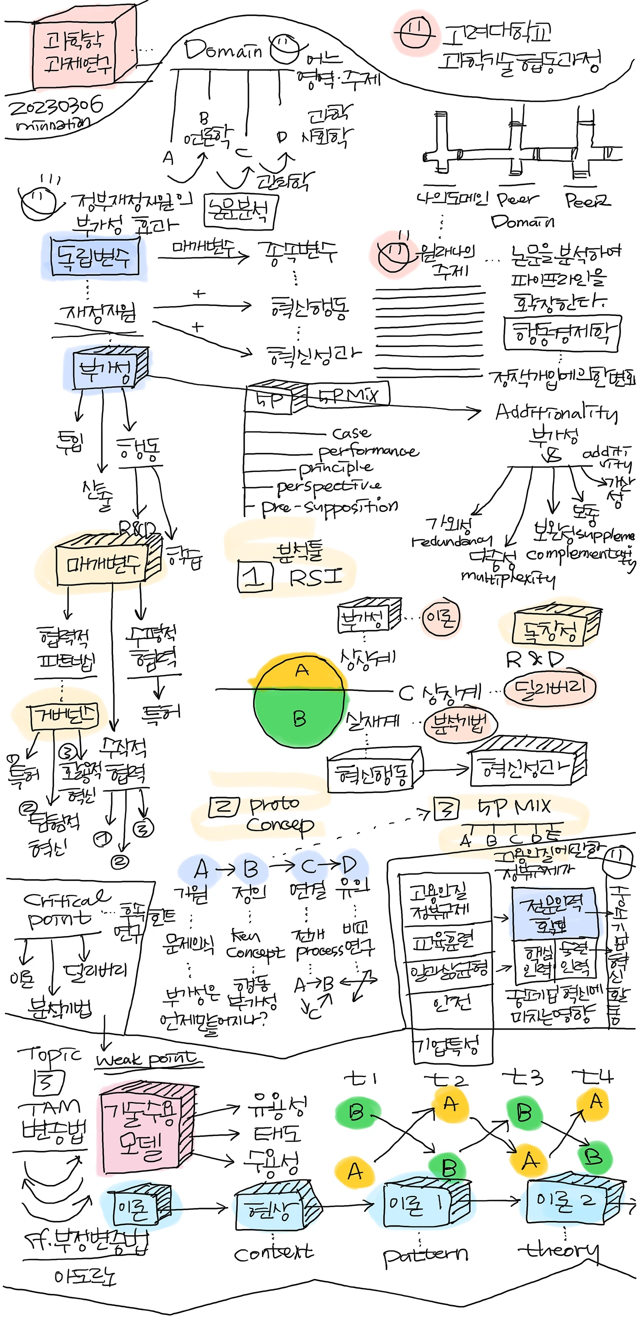 오늘 강의를 들으면서 아래와 같은 정리를 해 보았다. 앞으로 박사학위 논문을 한주에 6개씩 읽고 토론을 해야 한다. 그러면 이번학기 거의 80개의 논문을 읽고 토론을 하게 되니 어느정도 크리티컬 포인트를 자연적으로 찾을 수 있을 것 같다. 전공은 과학사회학이다. 과학기술의 변화가 사회에 어떤 영향력을 미치는지 이론과 방법론을 설정하고 딜리버리를 제대로 했는지를 살펴보는 시간이 될 것 같다. 쉽지 않은 과정이지만 노력은 배신하지 않으니깐, 열심히 달려가야 한다. 치명적인 포인트를 기억하면서 앞으로 나아가자. 다음시간에는 그동안 철학을 통해서 정리했던 프로토컨셉과 5P MIX 인식론, 그리고 자크라캉의 RSI까지 기존의 '이론-방법론-딜리버리'를 넘어서 완전히 새로운 포인트를 찾아보기 위한 연구를 시도해 볼 것이다. 역시 철학은 기본중의 기본이다.
