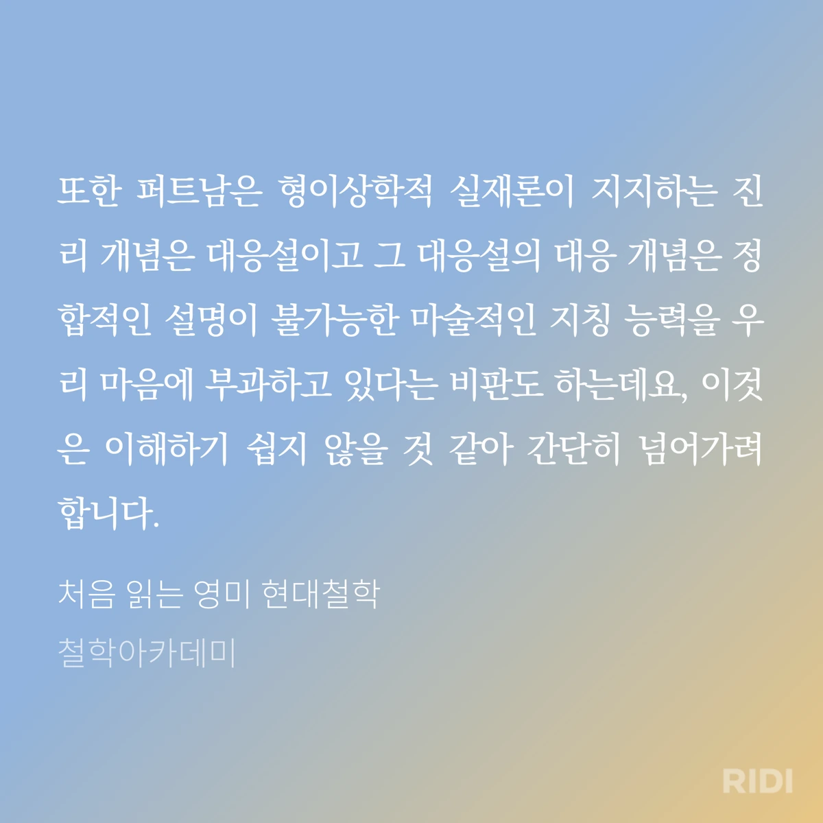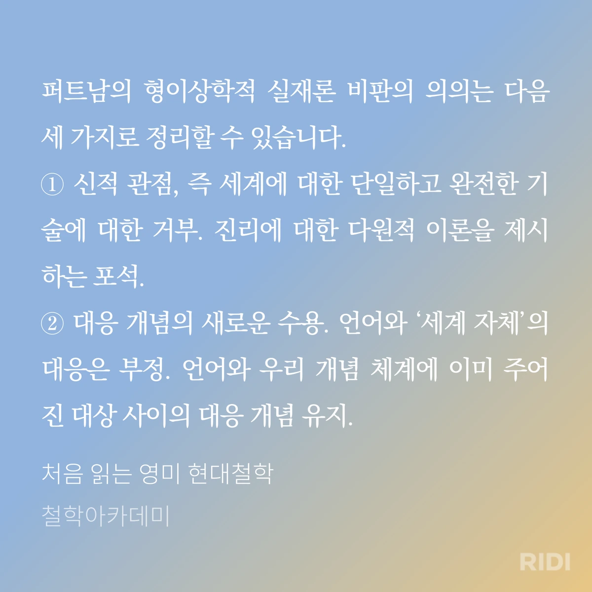 퍼트남은 이러한 형이상학적 실재론이 가짜라고