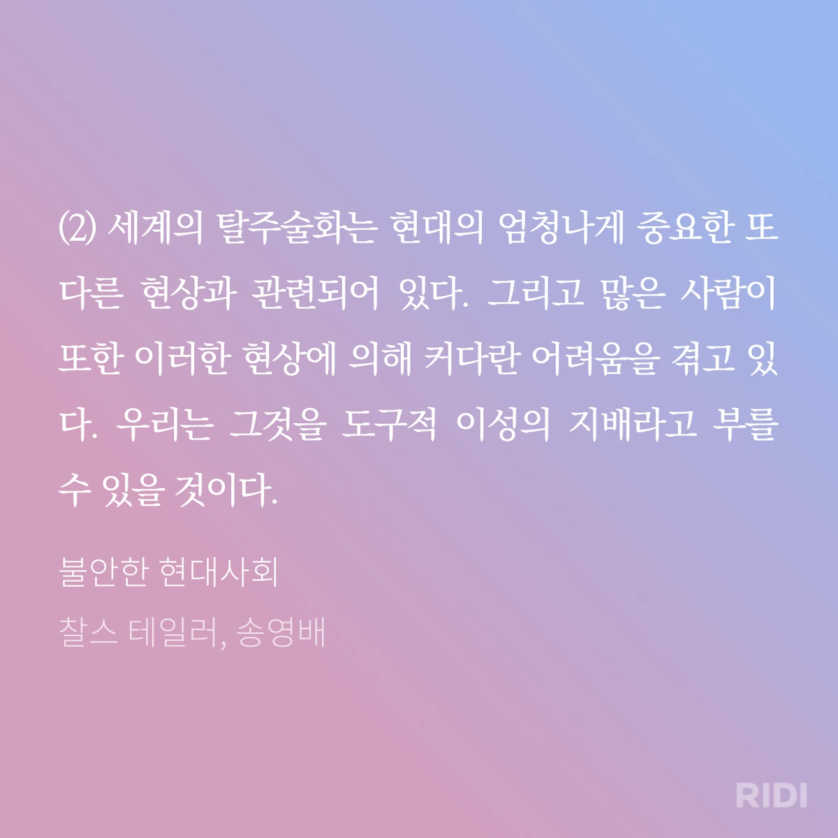 이런 상황에서 탈주술화는 개인을 도구성 이성이