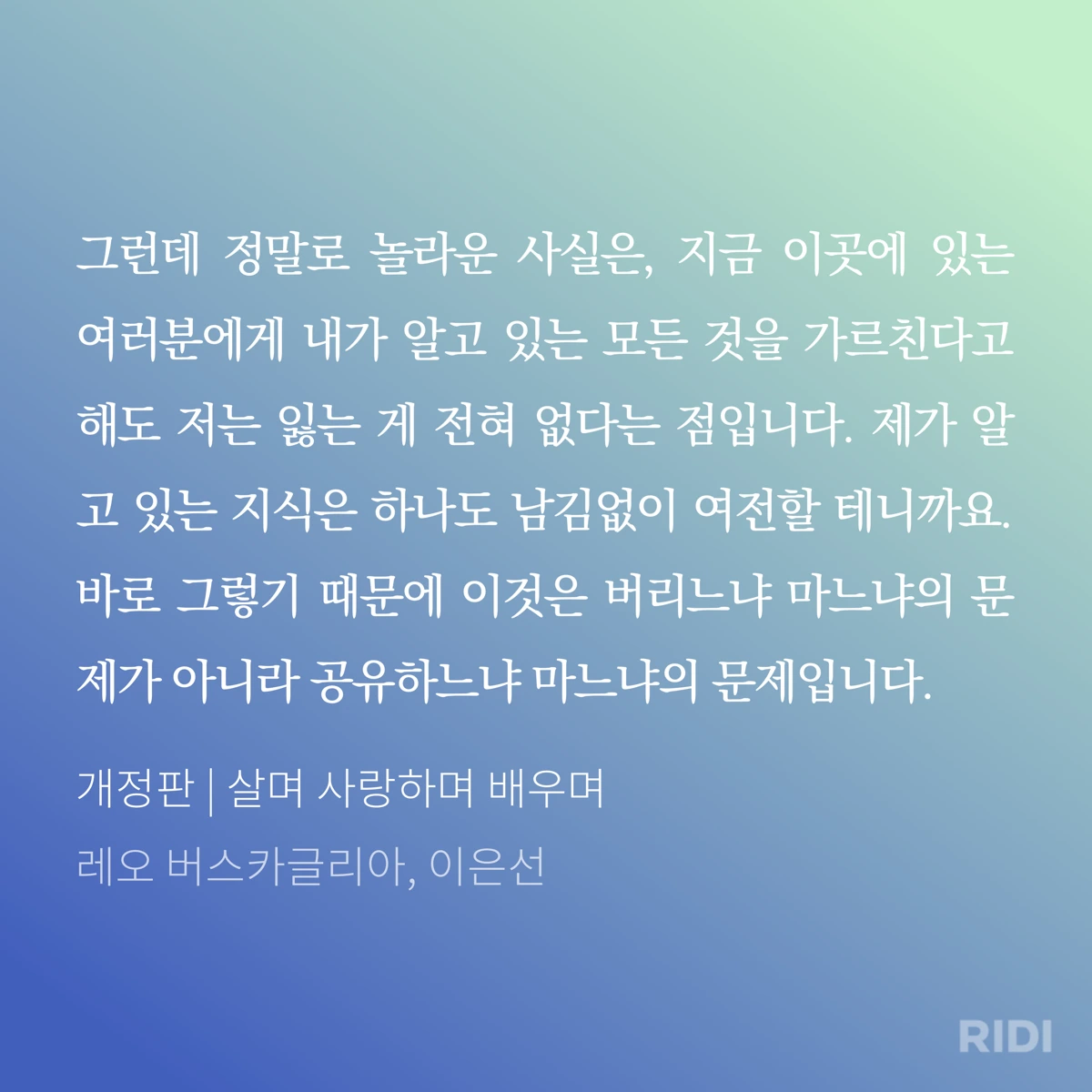 또한 이해받고 사랑받는 것도 인정하게 된다
