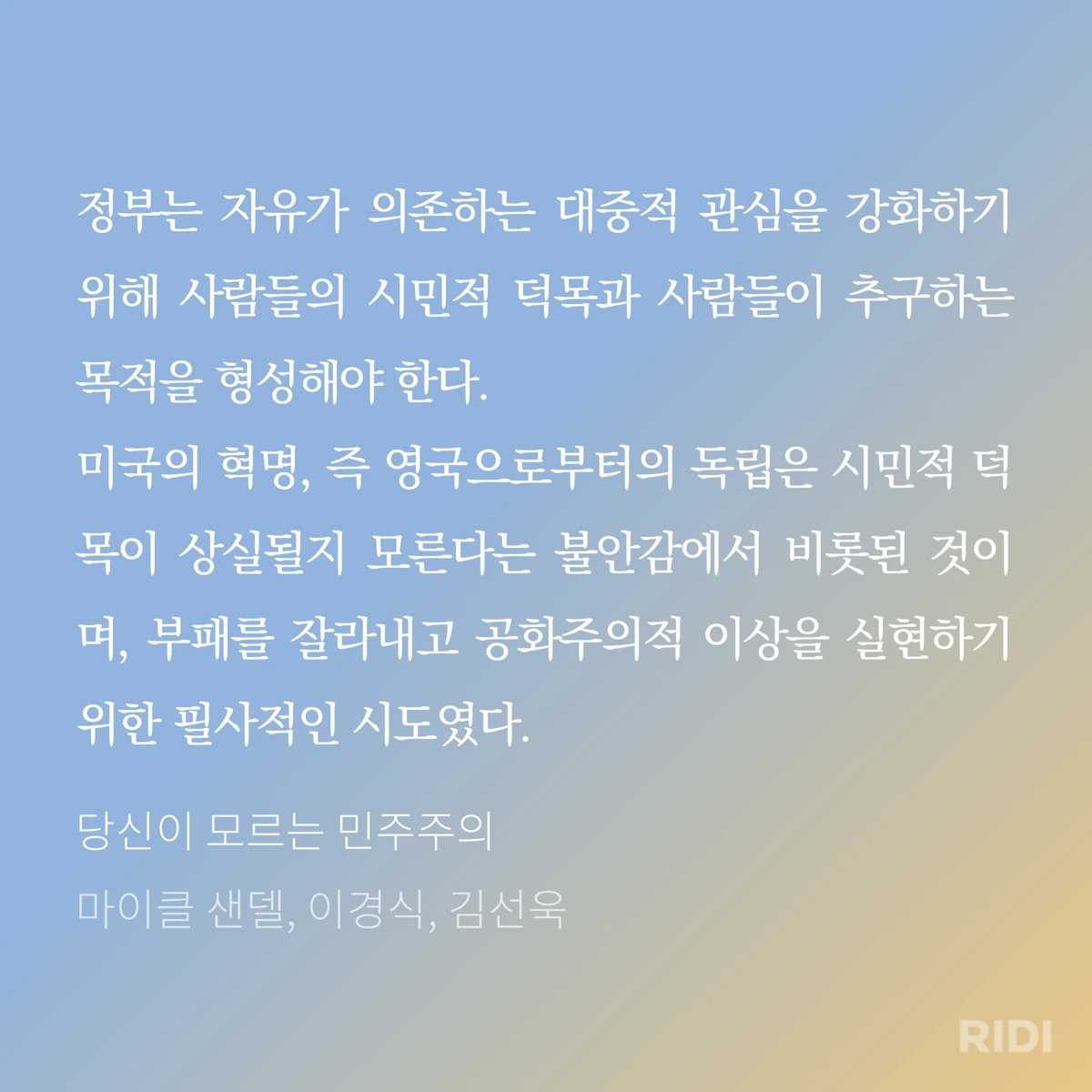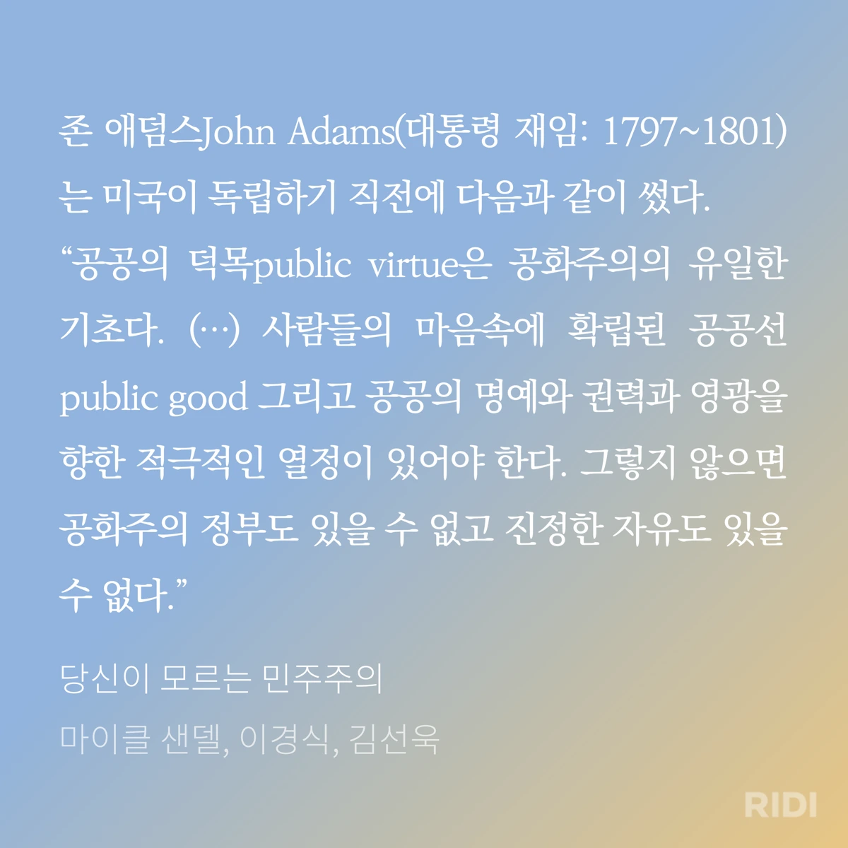 미국의 독립혁명은 결국 시민적 덕성을 위함이다