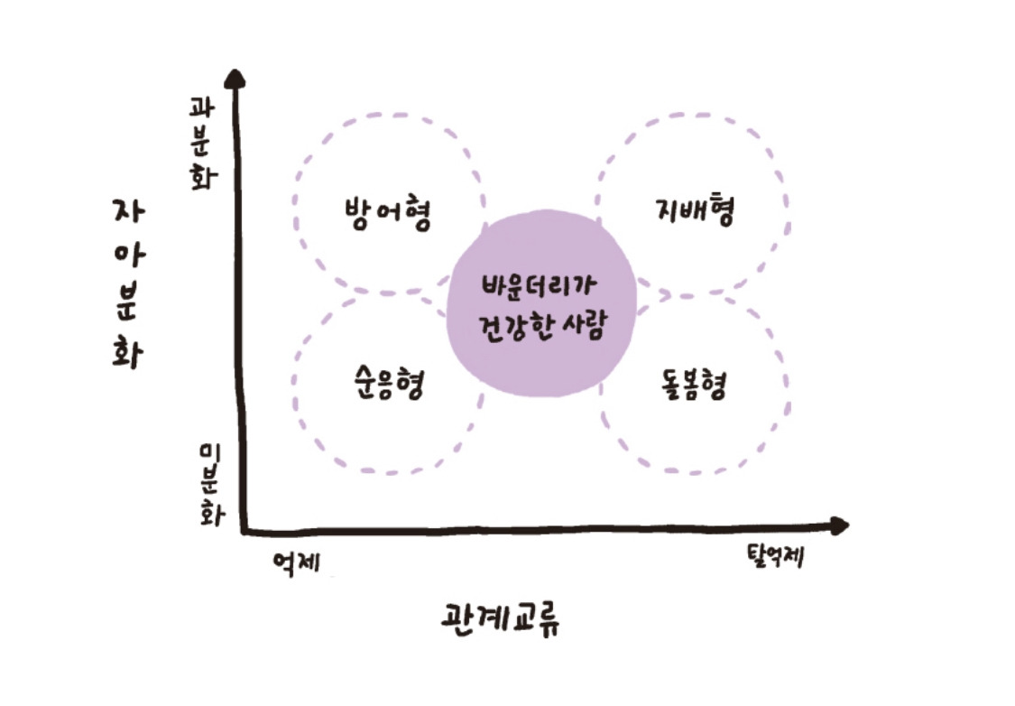 그런데 말이다. 만약에 건강한 바운더리를 가진 사람이 지배형이나 순응형, 돌봄형이나 방어형을 만나면 어떻게 될까?