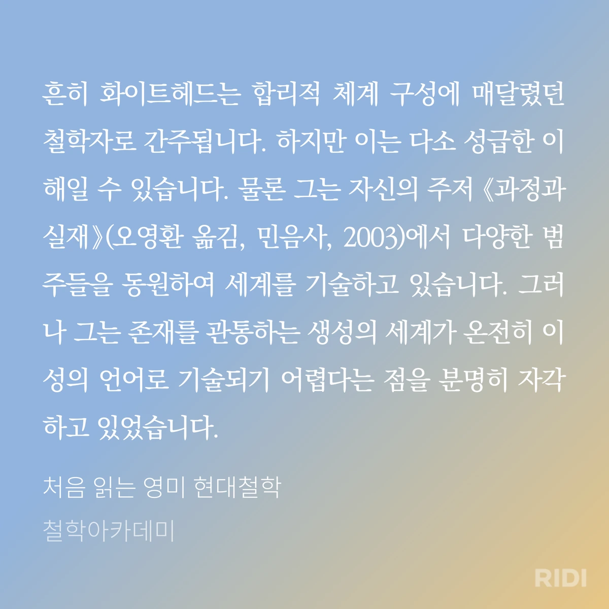 화이트헤드의 과정철학은 자연이 만들어가는