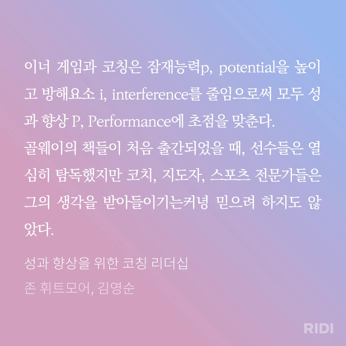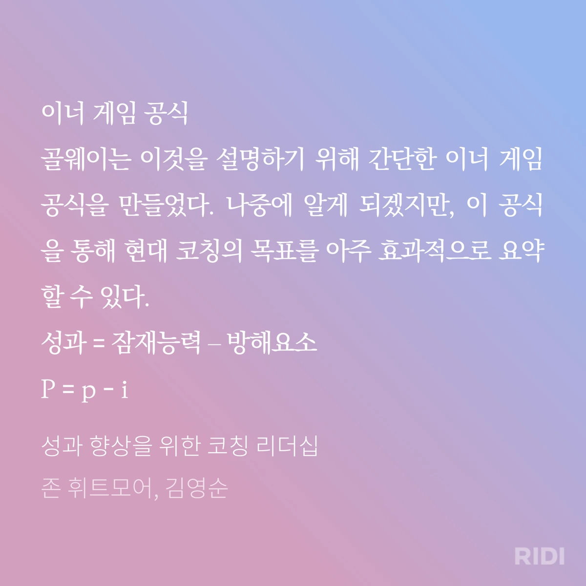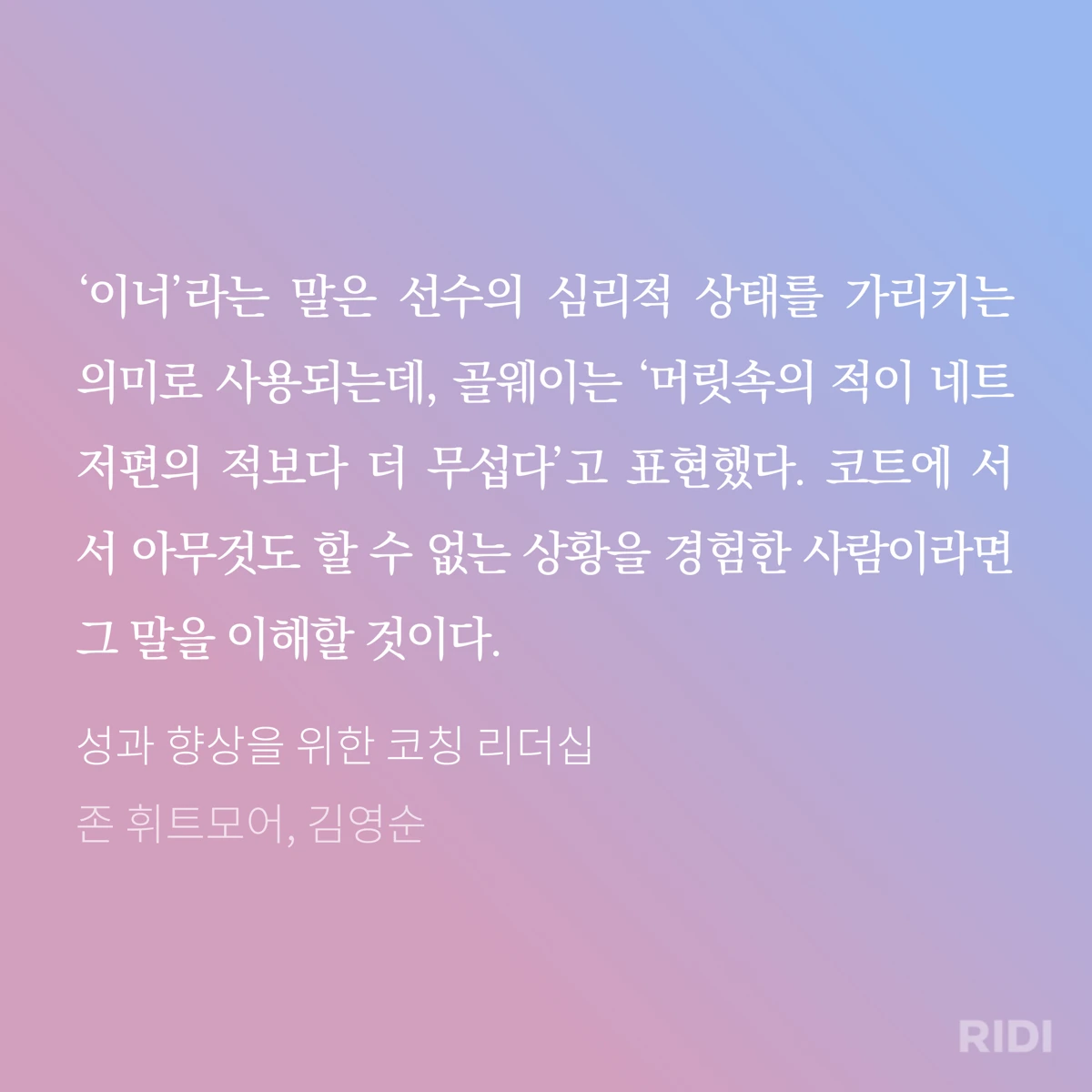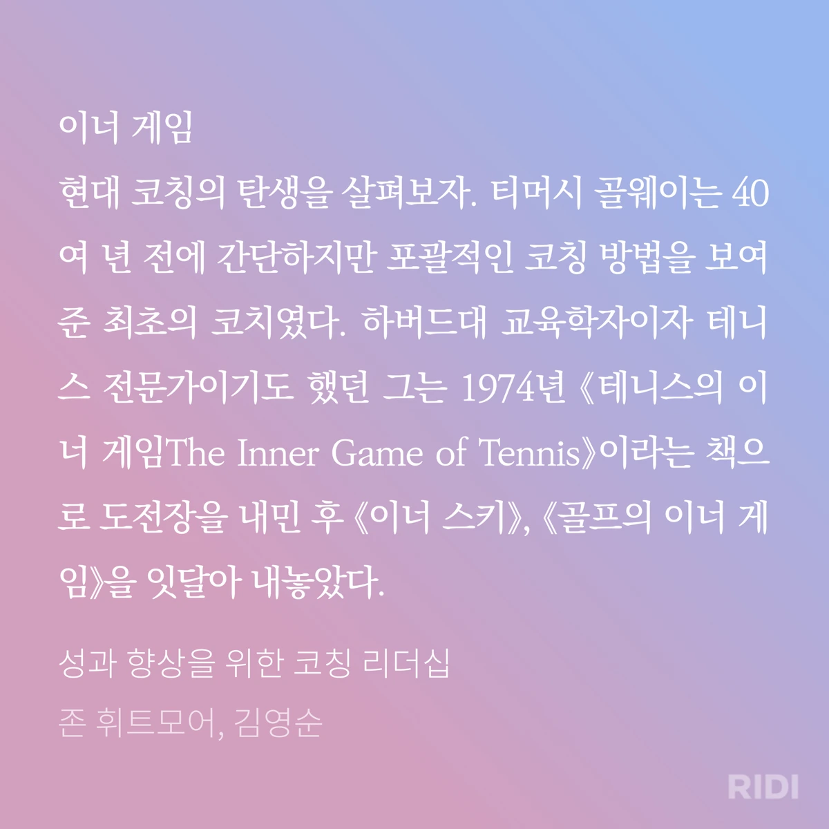 이너게임은 말 그대로 내면에서 일어나는 일이며코치는 내면의 잠재력이 깨어나서