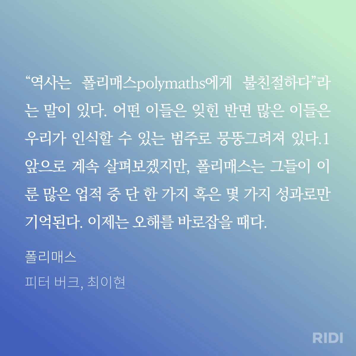 하지만 예나 지금이나 폴리매스는 일반사람들에게 금기시된다