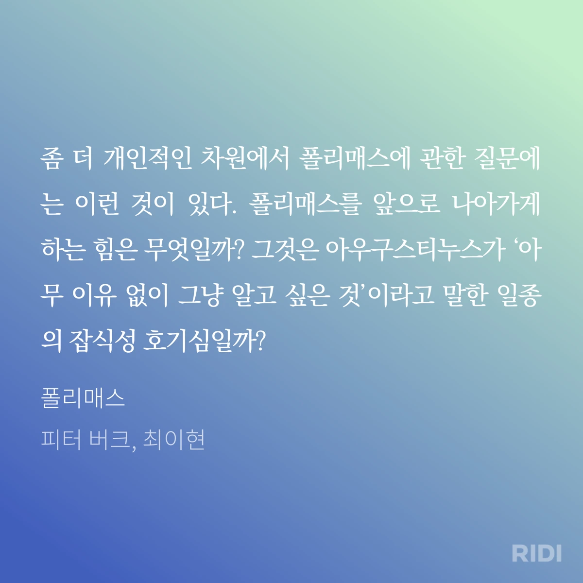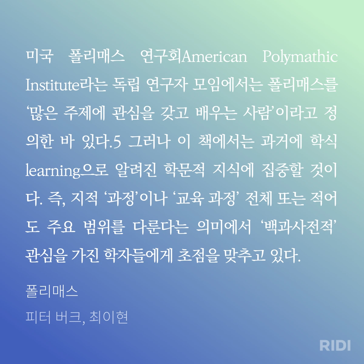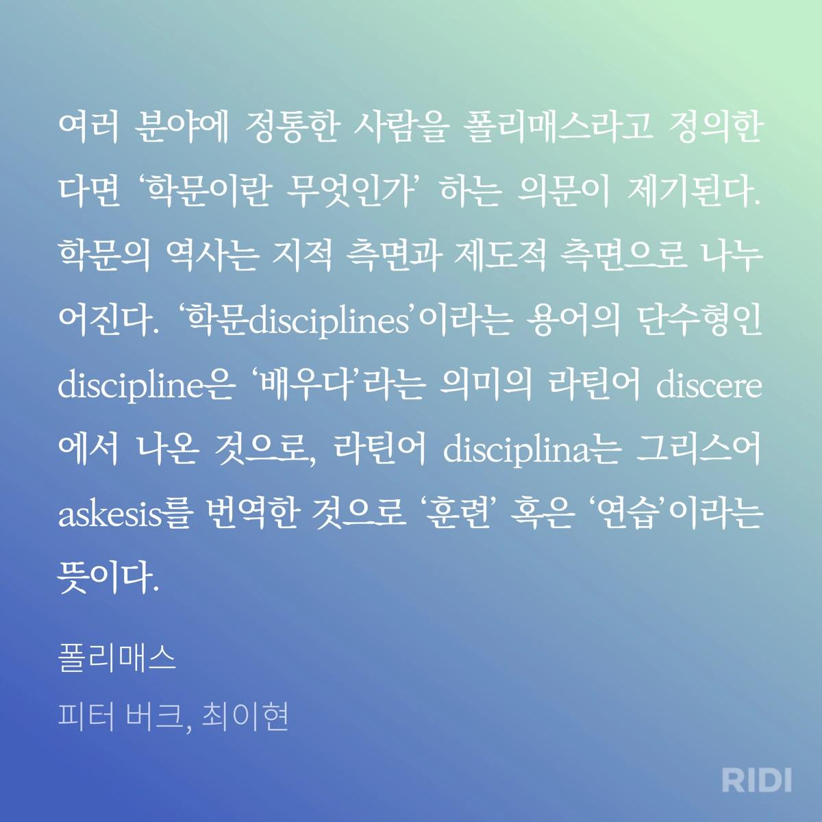 폴리매스가 될터이니 함께 해보자고 권하고 싶다