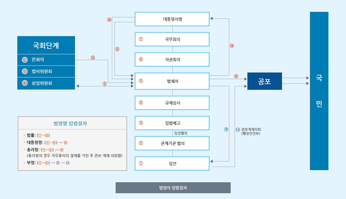 법령 : 법령은 법과 명령을 말한다. 명령이란 헌법과 법률의 위임에 따라 발하는 행정입법. 대표적으로 대통령령과 총리령, 그리고 각 부 장관들의 부령