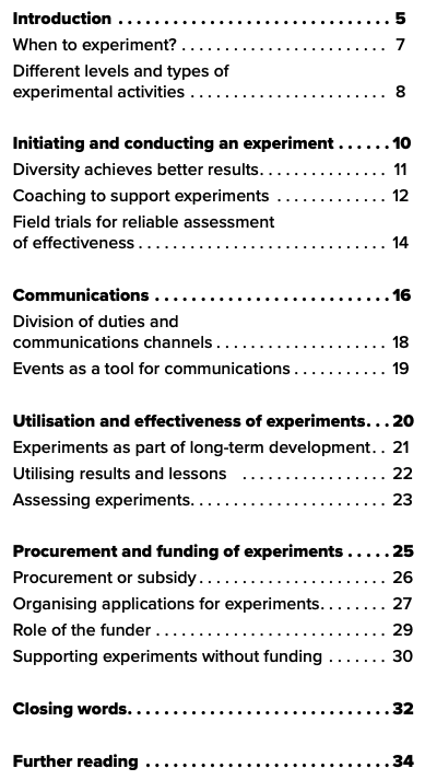 마쿠스 카네바 핀란드 총리실 시니어 스페셜리스트는 2018년 Lab2050에서 주최한 포럼에서 핀란드의 정책실험의 전략에 대해서 소개했다(최영준, 2020). 2015년부터 시작된 핀란드 총리실 주도로 진행되는 '실험의 문화'(a culture of experimenting'은 기업가 정신을 향상시키고 시민들이 직접 정책을 만들고 실험을 하는 문화를 만들기 위해서 전략적으로 진행되고 있다. 정책을 만들거나 공공의 서비스를 개선하기 위한 방법을 만들 때 가장 고민이 되는 부분은 바로 '효과성'이다. 무엇인가를 실행할 때 내 돈이 아니라 모두의 돈이라면 성패에 따라서 자신이 떠 안게 될 리스크를 지고 갈 사람은 별로 없다. 더욱이 시민참여를 이야기할 때 가장 큰 문제는 시민들이 결정한 것을 정부가 진행할 경우 결과가 좋으면 다행이지만 대부분은 결과를 측정할 수 없거나 지속될 수 없는 문제가 생긴다.
