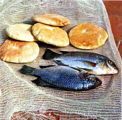 빵 다섯 개와 물고기 두 마리 뿐입니다.