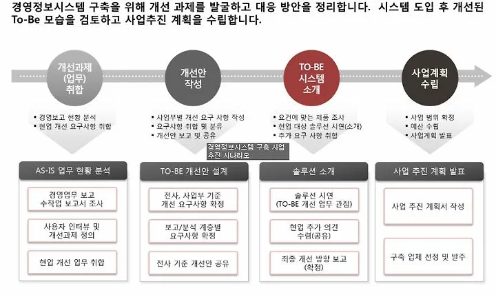 최적의 정보 시스템 도입: 프로세스 혁신을 위해 필요한 정보 시스템과 기술을 선정하고, 이를 효과적으로 도입할 계획을 수립했다.