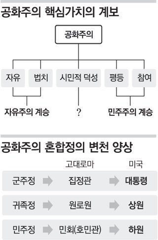 법치주의와 권력 분립 : 공화주의는 법의 지배와 권력의 균형을 강조한다. 이는 전제정치나 다수의 폭정으로부터 시민을 보호하고, 공동체의 안정과 지속 가능성을 유지하기 위한 기본 조건이다.