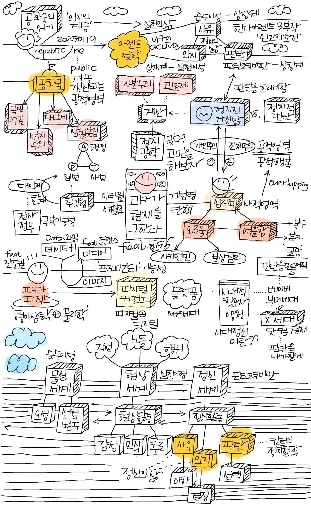 윤석열탄핵을 반대하는 군중이 서울서부지방법원을 공격했다. 탄핵을 반대하는 것의 '정당성'은 일상을 초월한 폭력의 정당성으로 발전했다. 법치주의가 무너지고, 국민주권을 제한하는 계엄을 찬성하는 사람들의 찬가가 울리고 있다. 공화국은 언제나 위기에 취약하다. 아니 '대의제'에 취약하다. 누군가 '대중'의 공포와 외로움을 이용해서 권력을 잡으면 공화국의 헌법을 작위로 바꾸어서 자신의 체제를 유지하는 수단으로 사용하기 때문이다. 계엄령에 관한 정당성이 '부정선거'를 처단하기 위한 논리라면서 국회에 특수부대가 등장하고 선관위에 군인들이 들이 닦친다. 논리와 시민적 덕성은 어디에서도 찾아볼 수 없지만, 여전히 미국국기와 한국국기는 등장한다.
