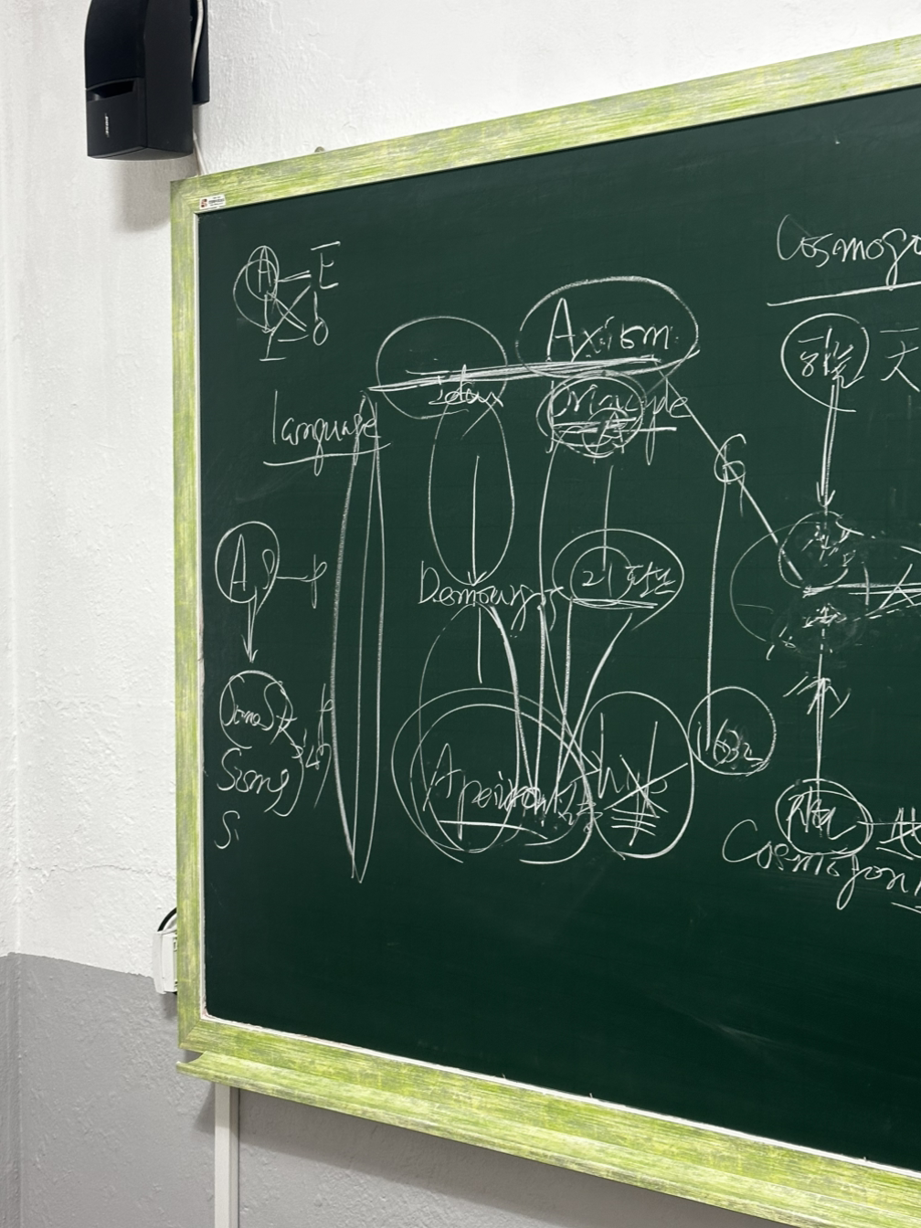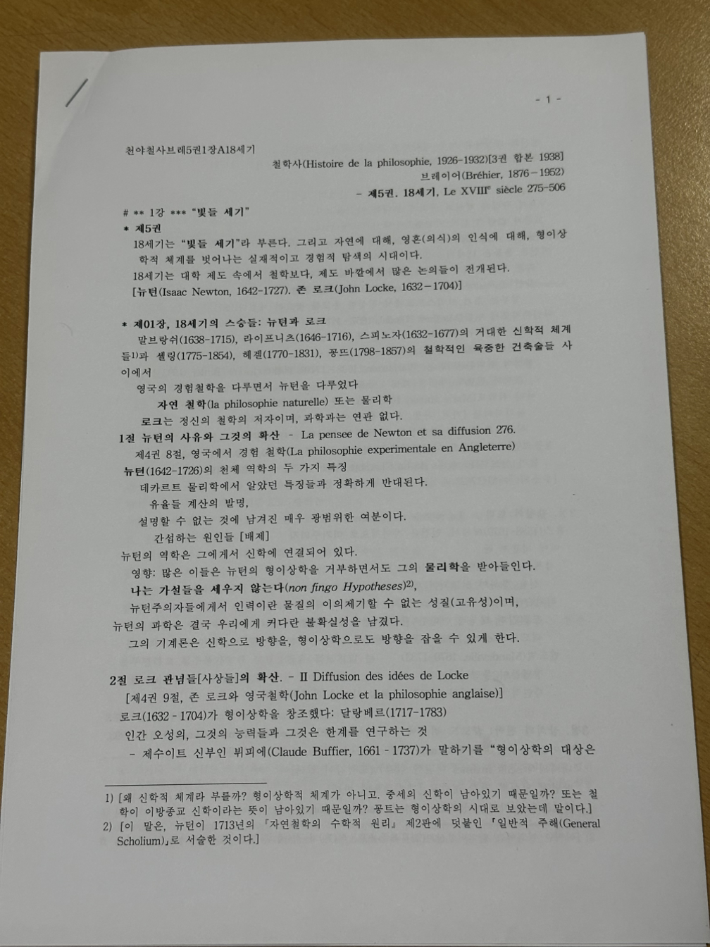 오래만에 철학아카데미에 왔다. 지금은 홍제동 끝자락에 위치하고 있지만 8년전에 한참 다닐 때는 경복궁역에 나름대로 핫한 곳에 있었다. 오늘은 류종열 선생님의 서양철학사를 듣는다. 프랑스철학자 중에 '브레이어'라는 철학자가 정리한 책으로 공부한다. 아리스토텔레스의 논리학의 제 1권에 나오는 '원리'는 아리스토텔레스가 규명한 하늘이 움직이는 변하지 않는 진리였다. 하늘의 움직임을 표현하기 위해서 원리라고 했다. 그러나 수학과 같은 표면 즉, 인간들의 세계의 논리는 '법칙'이라고 불렀다. 그러니깐 르네상스는 '인간들의 법칙'으로 하늘의 '원리'를 다시 해석한 것이라고 할 수 있다. 수학에서 '부정수'가 나오는 것도 사실은 인간들이 정리한 '법칙'을 하늘에 적용한 결과라고 할 수 있다. 하늘의 '보편'은 부정수가 없지만 인간들의 세계에서는 '공백'이나 '부족함'이 있기 때문에 '부정수가'가 등장할 수 있는 것이다.